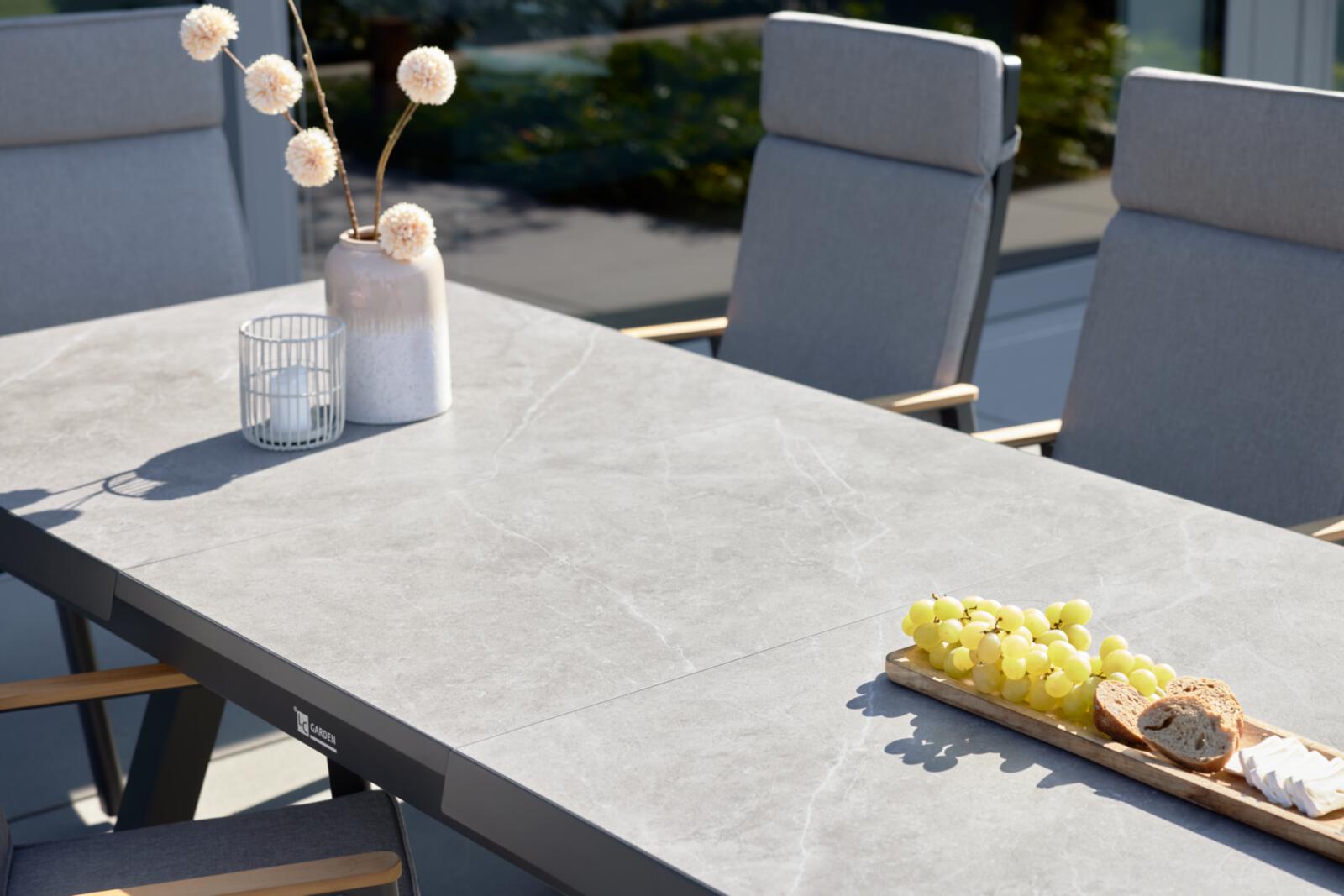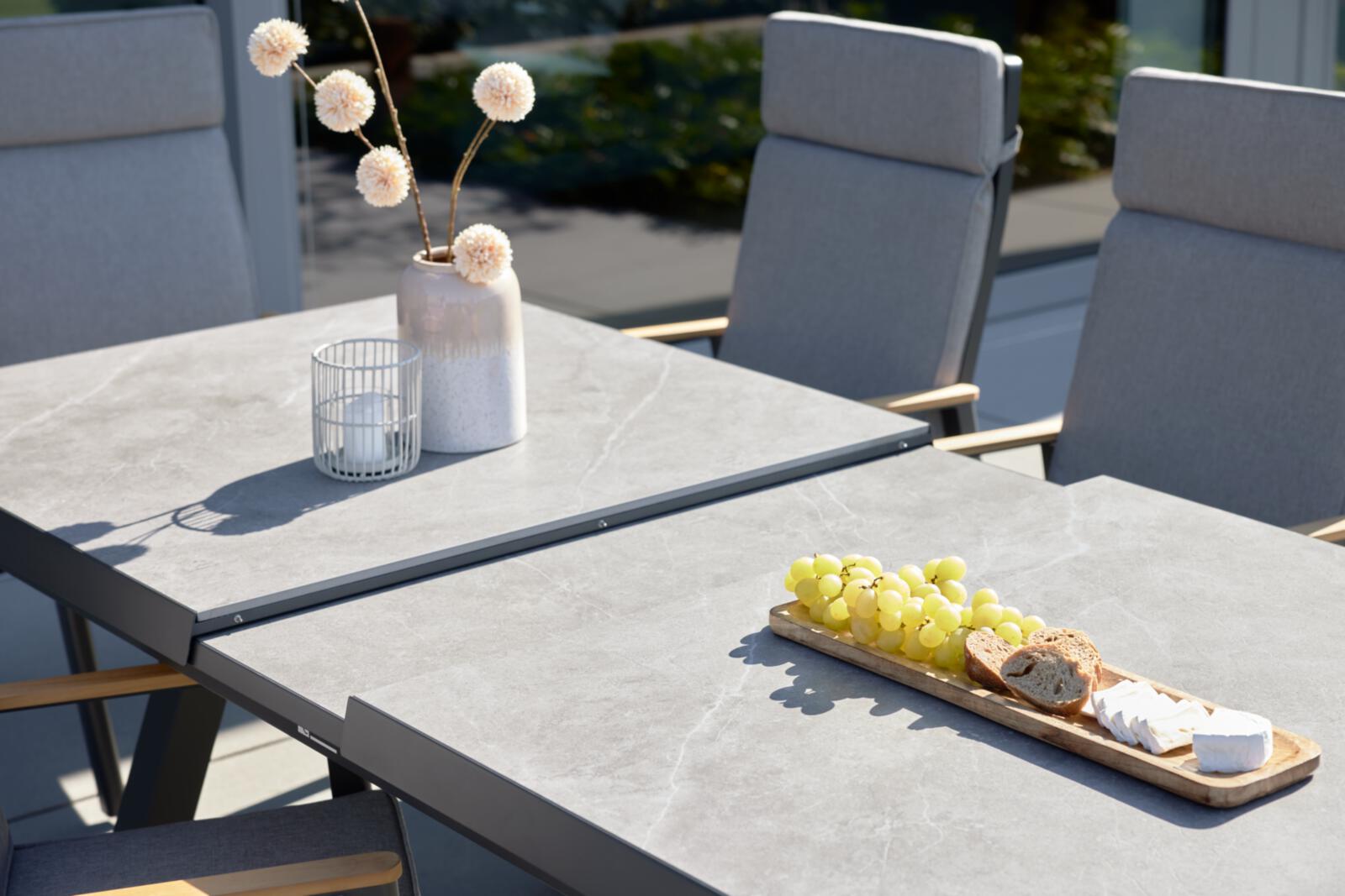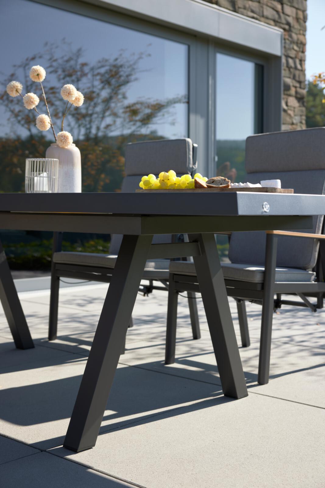 Einzigartiges Design trifft auf herausragende Funktionalität: Der rechteckige Gartentisch Interliving 7011 in elegantem Anthrazit zieht alle Blicke auf sich. Gefertigt aus hochwertigem Sinterstein, überzeugt er nicht nur durch seine stilvolle Optik, sondern auch durch seine beeindruckenden Materialeigenschaften. Ob UV-beständig, farbbeständig oder kratzfest – dieser Tisch ist der Inbegriff von Langlebigkeit. Dank seines pulverbeschichteten Alu-Gestells in Anthrazit ist er zudem stoß- und korrosionsbeständig, was ihn perfekt für den Außenbereich macht. Lass dich von seiner Wetterfestigkeit begeistern und genieße unbeschwerte Stunden im Freien.