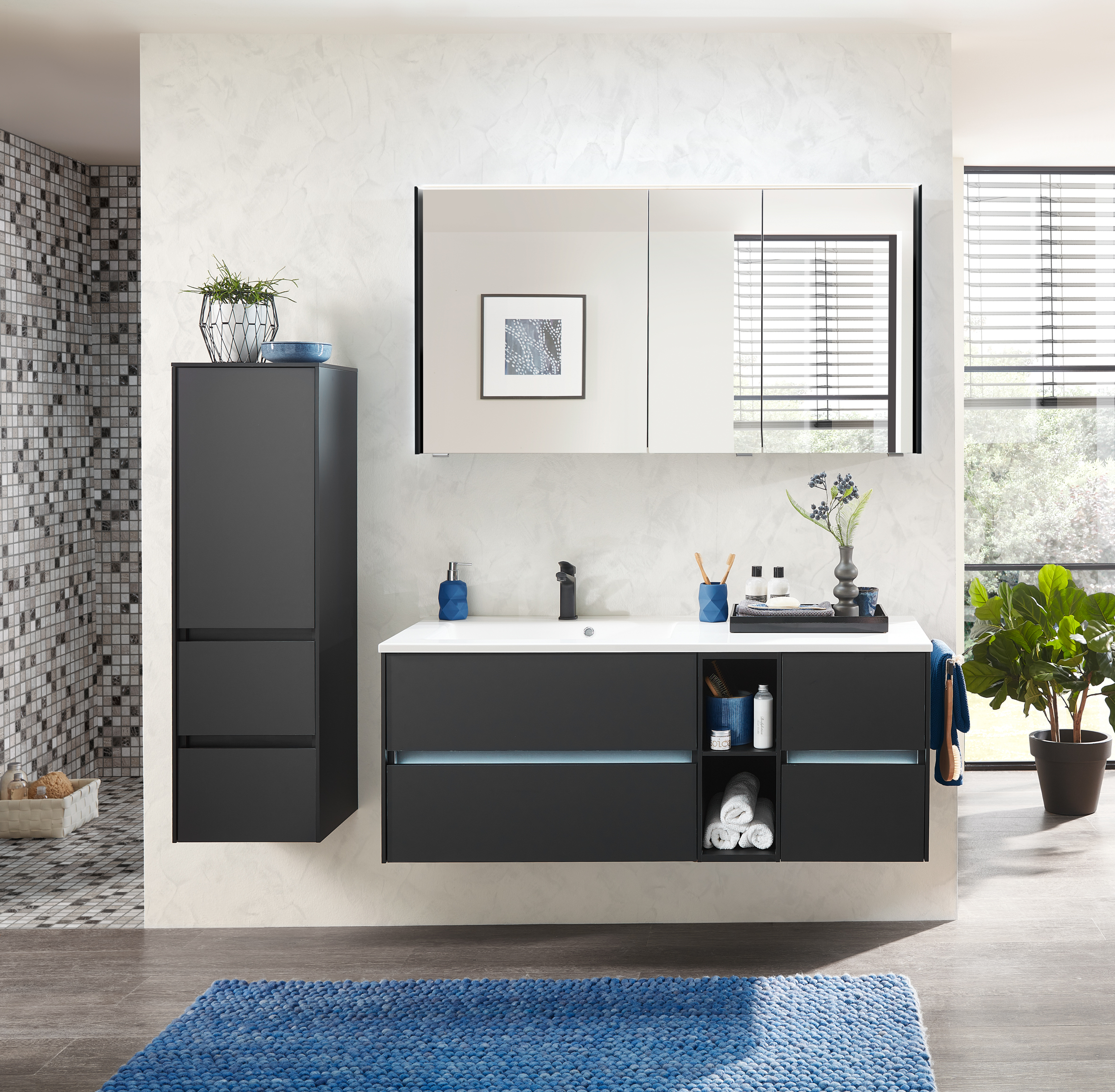Erlebe stilvolle Eleganz und Funktionalität mit den Solitaire Badmöbeln in edlem Schwarz. Diese Badmöbel setzen in jedem Badezimmer ein klares Statement und bieten dir sowohl Design als auch Praktikabilität. Die hochwertige Verarbeitung und das zeitlose Design passen perfekt in moderne wie klassische Einrichtungsstile. Mit den Solitaire Badmöbeln wird dein Badezimmer zu einer Wohlfühloase, die jeden Morgen in einem neuen Licht erstrahlt. Lass dich von der Kombination aus Ästhetik und Funktion überzeugen und bring frischen Wind in deine vier Wände. Mach den ersten Schritt zu einem luxuriösen Badeerlebnis mit den Solitaire Badmöbeln.