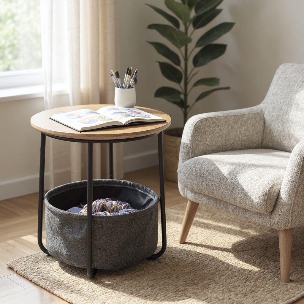 Eiche in ihrer schönsten Form: Der Rubi 1 Beistelltisch kombiniert die natürliche Eleganz von geöltem Eichenholz mit der modernen Raffinesse pulverbeschichteten Stahls. Mit einem kompakten Durchmesser von 45 cm passt er perfekt in jedes Wohnzimmer und bietet eine stilvolle Ablagefläche für deine Lieblingsbücher oder eine Tasse Tee. Ob in den Farbtönen Eiche, Grau oder Schwarz - dieser Tisch setzt überall Akzente. Die robuste Materialkombination aus Eiche, Stahl und Stoff sorgt für Langlebigkeit und Stabilität, während das Design zeitlos bleibt. Entdecke, wie der Rubi 1 Beistelltisch deinem Zuhause das gewisse Etwas verleiht!