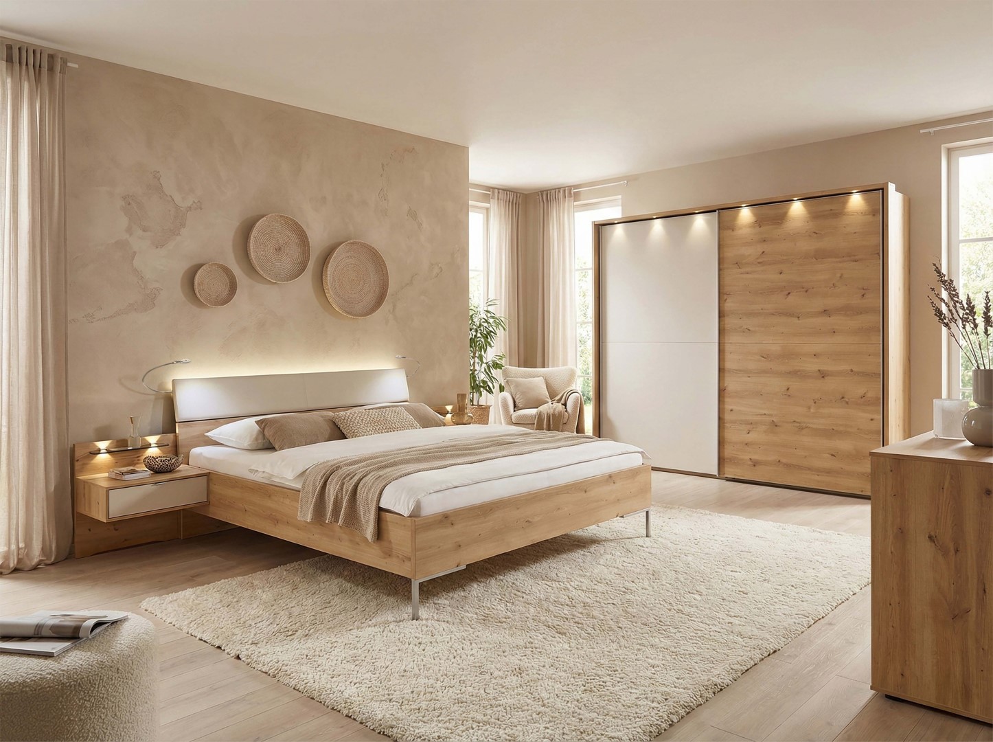 Die Bettanlage Texel beeindruckt durch ihren eleganten Farbton in Eiche, kombiniert mit Akzenten in Champagner. Erlebe den luxuriösen Komfort, den die raffinierte Kombination aus hochwertigem Holz und edlem Kunstleder bietet. Mit dieser stilvollen Bettanlage wird dein Schlafzimmer zu einer Oase der Entspannung und Ästhetik. Lass dich von der harmonischen Verbindung aus natürlichem Charme und modernem Design begeistern. Die sorgfältig ausgewählten Materialien sorgen nicht nur für ein ansprechendes Erscheinungsbild, sondern auch für Langlebigkeit und Stabilität. Gönn dir diesen Hauch von Eleganz und Komfort, der jeden Raum aufwertet und ein Gefühl von Geborgenheit vermittelt.