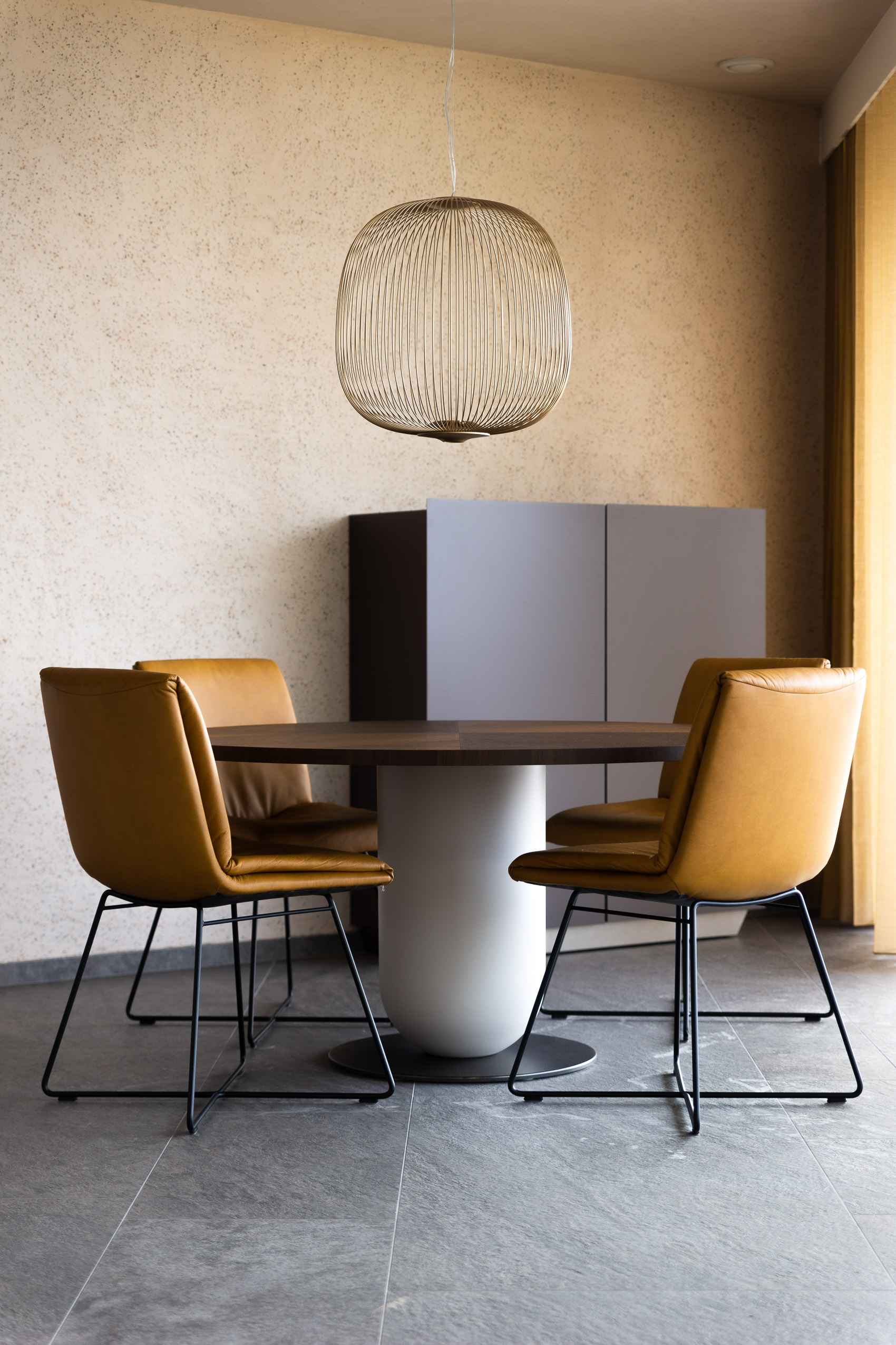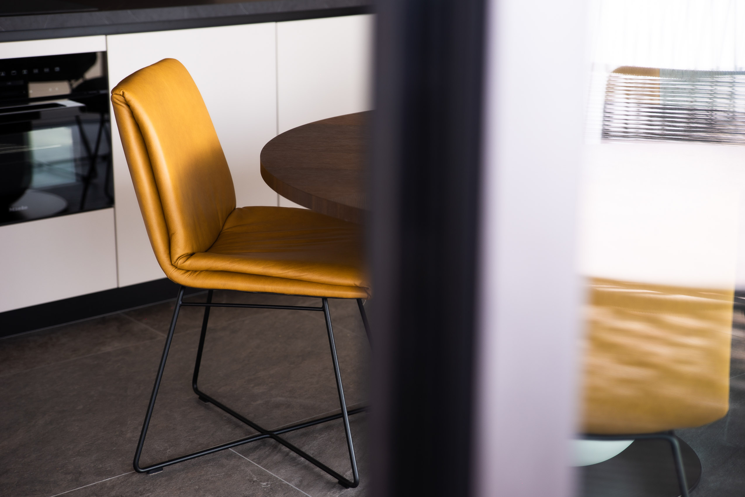 Die Einrichtung hält sich gekonnt im Hintergrund und beschränkt sich auf das Wesentliche. Trotzdem müssen die Bewohner dank durchdachter Funktionen und hochwertiger Ausstattung auf keinen Komfort verzichten. Alle Sitzgelegenheiten sind so ausgerichtet, dass der Blick ungehindert nach draußen schweifen kann.