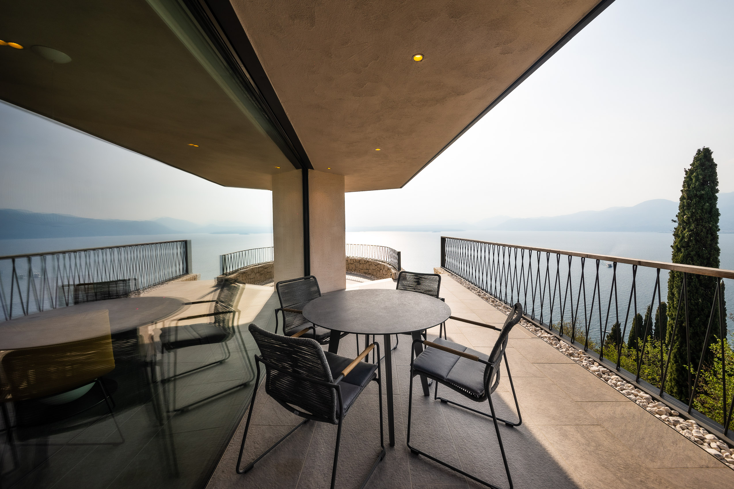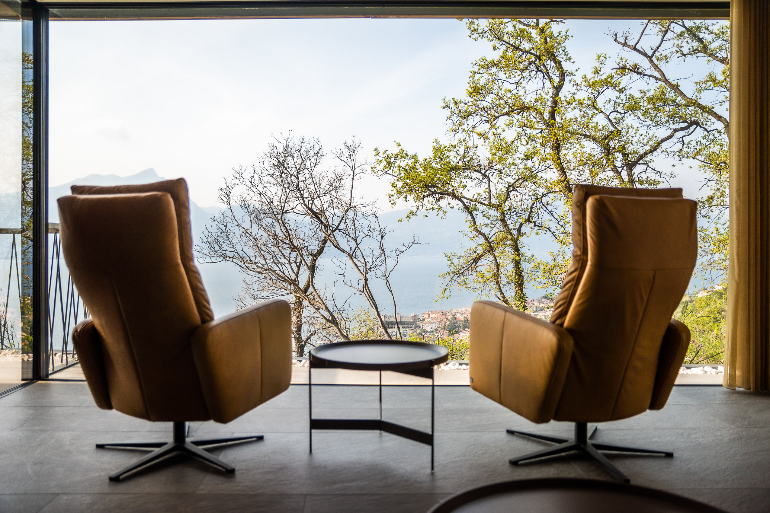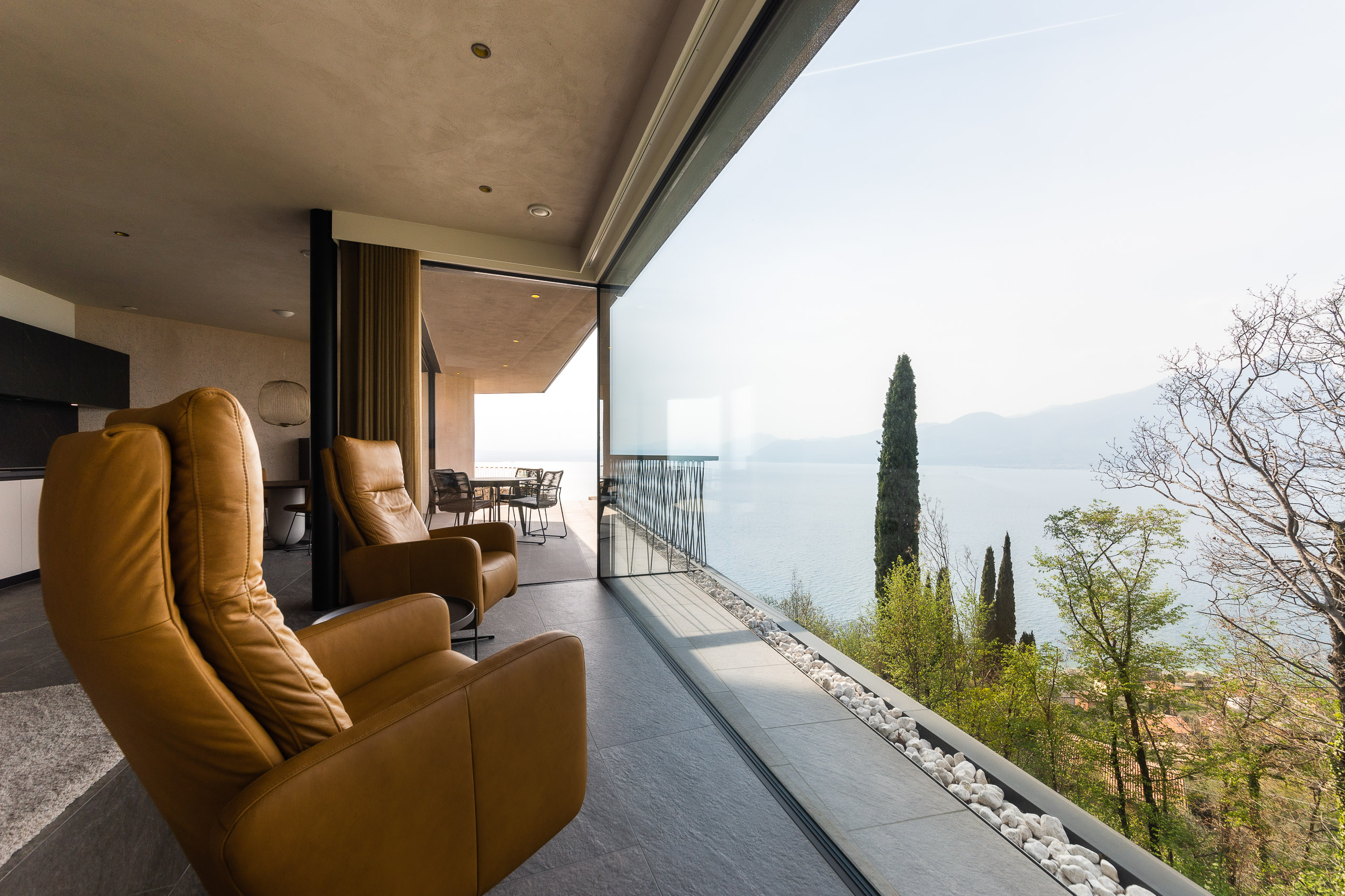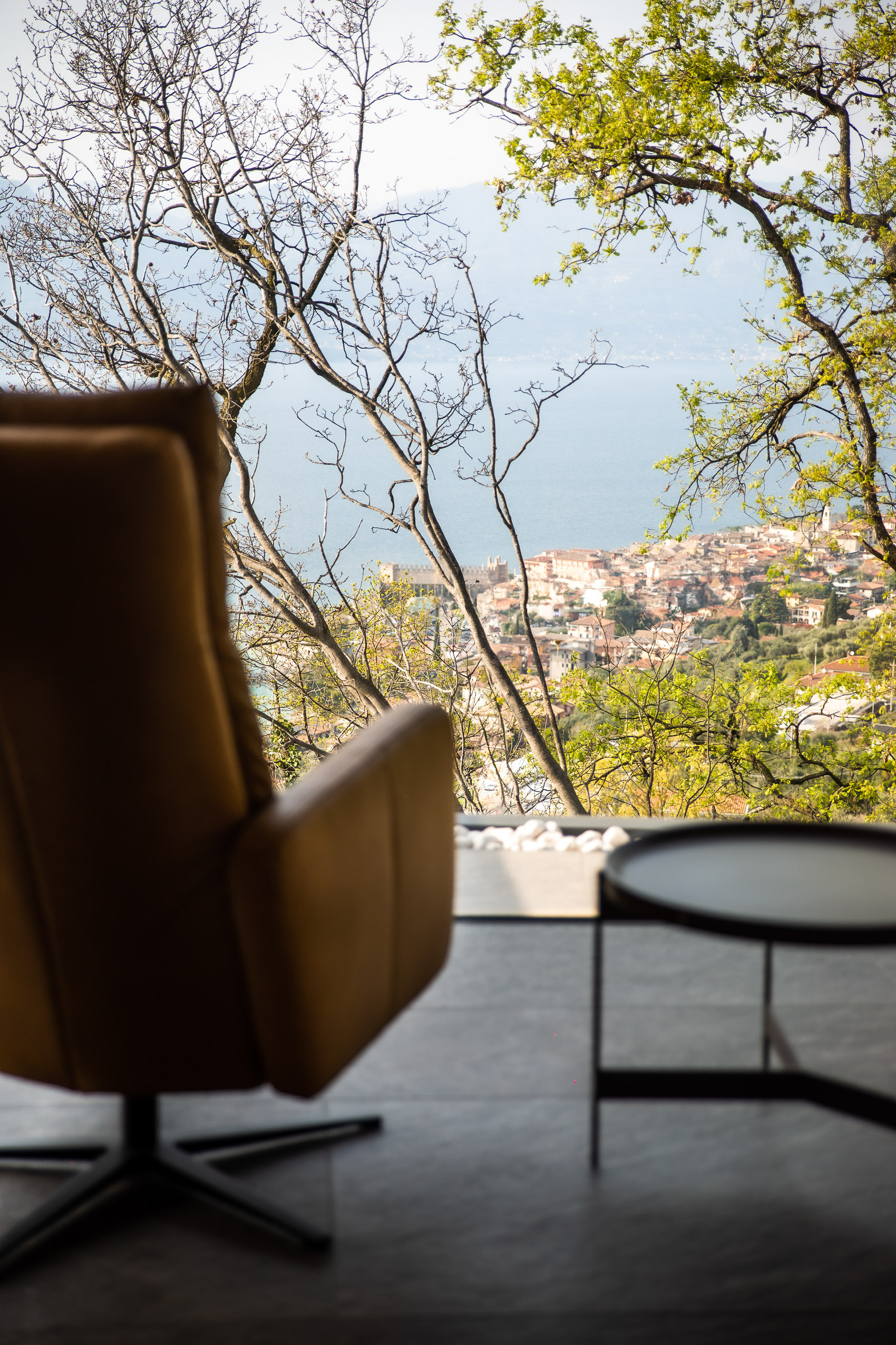 Diese kleine, aber feine Einliegerwohnung besticht durch ihre einzigartige Aussicht: Durch die komplett verglaste Fassade genießt man von jedem Winkel der Wohnung einen traumhaften Blick auf das malerische Städtchen und den Gardasee.