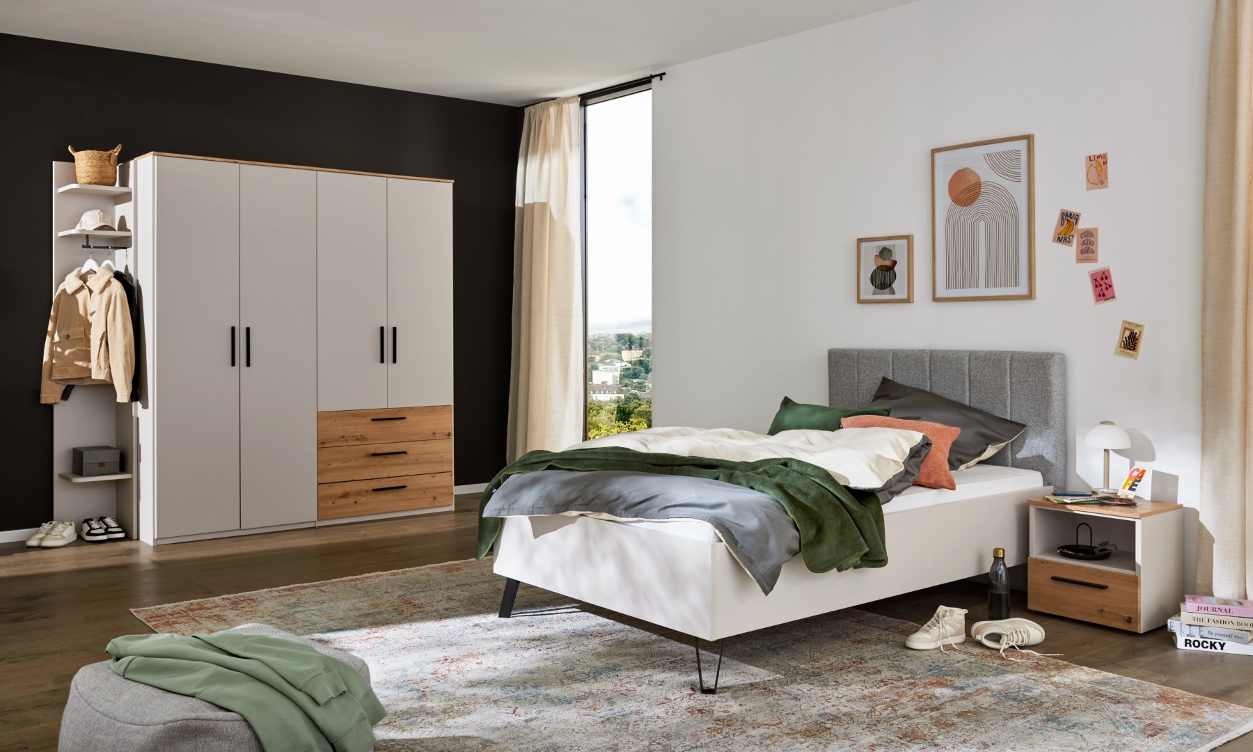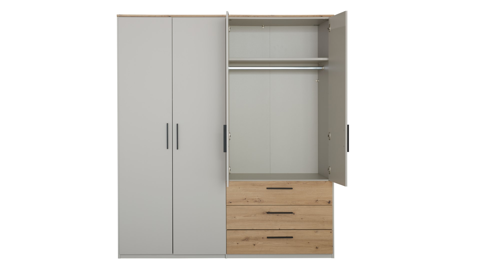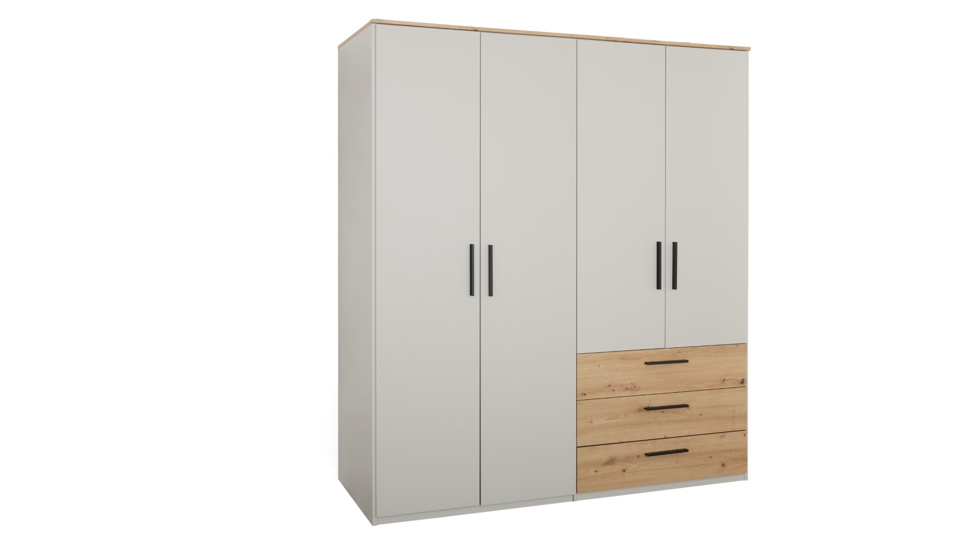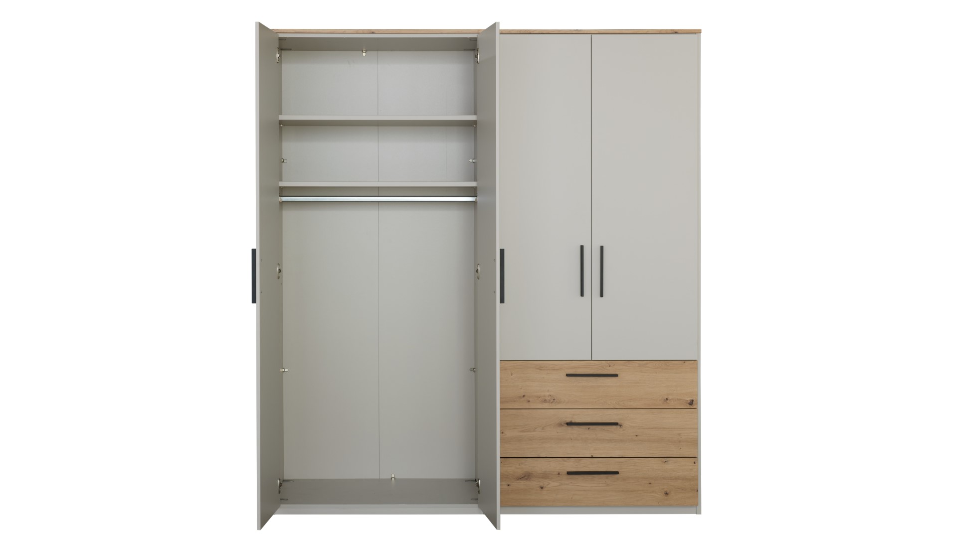 Interliving 1702 besticht mit seinem eleganten Farbspiel aus Eiche und Sandgrau. Der Drehtürenschrank vereint die robuste Schönheit von Eiche Artisan mit der Vielseitigkeit von Holzwerkstoff. Diese Kombination sorgt für eine natürliche Optik, die durch die Nachbildungseigenschaft perfekt zur Geltung kommt. Suchst du nach einem stilvollen Aufbewahrungsort, der nicht nur funktional, sondern auch ein echter Hingucker ist? Dann könnte dieser Schrank genau das Richtige für dich sein. Ob du ihn im Schlafzimmer oder im Ankleidezimmer platzierst, er fügt sich harmonisch in jedes Ambiente ein und bietet reichlich Stauraum für deine Garderobe.
