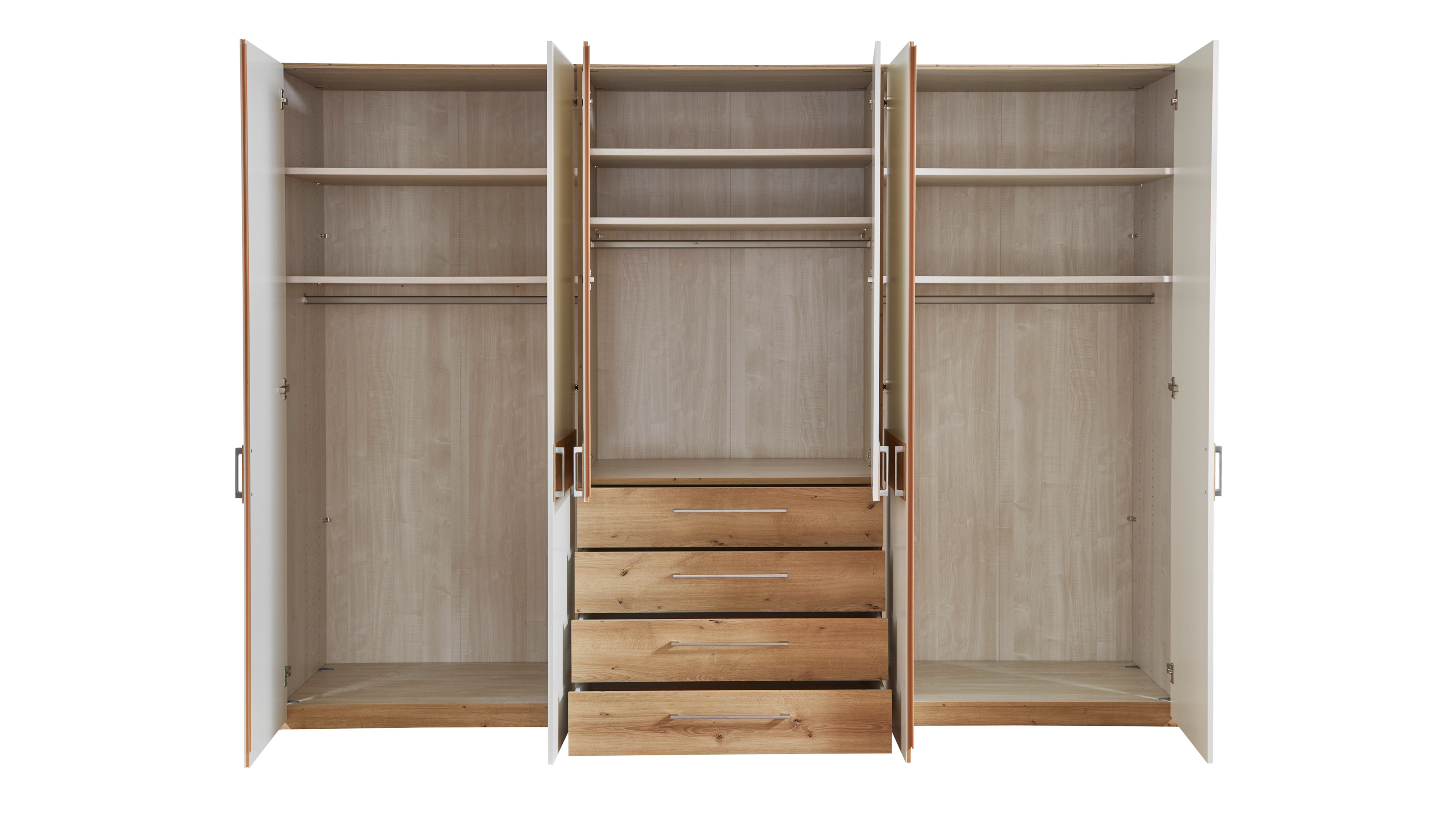 Produktinformationen "Drehtürenschrank Padua Eiche Nachbildung Absetzung weiß"