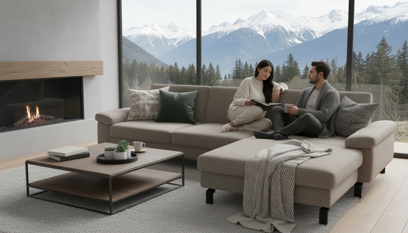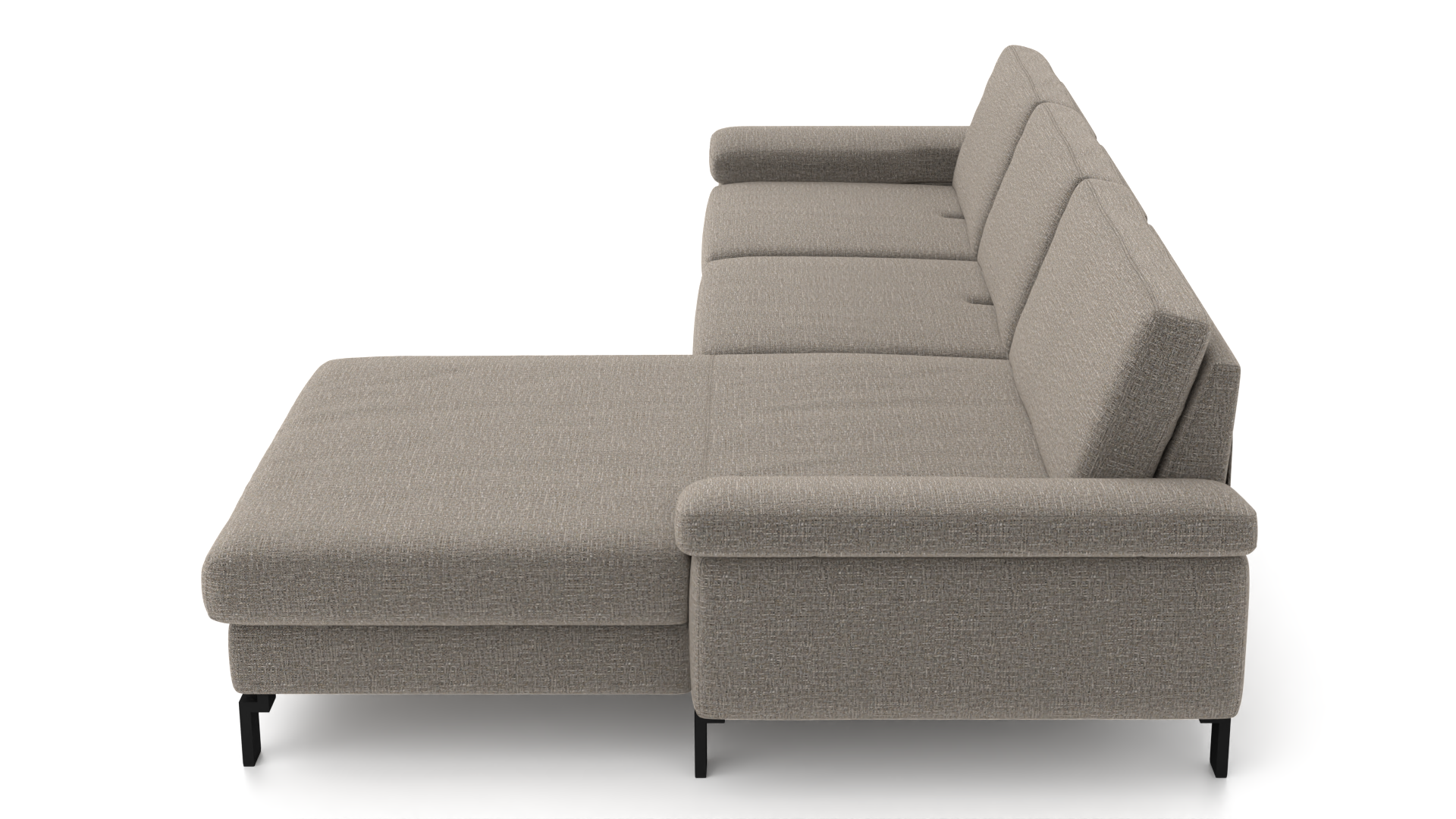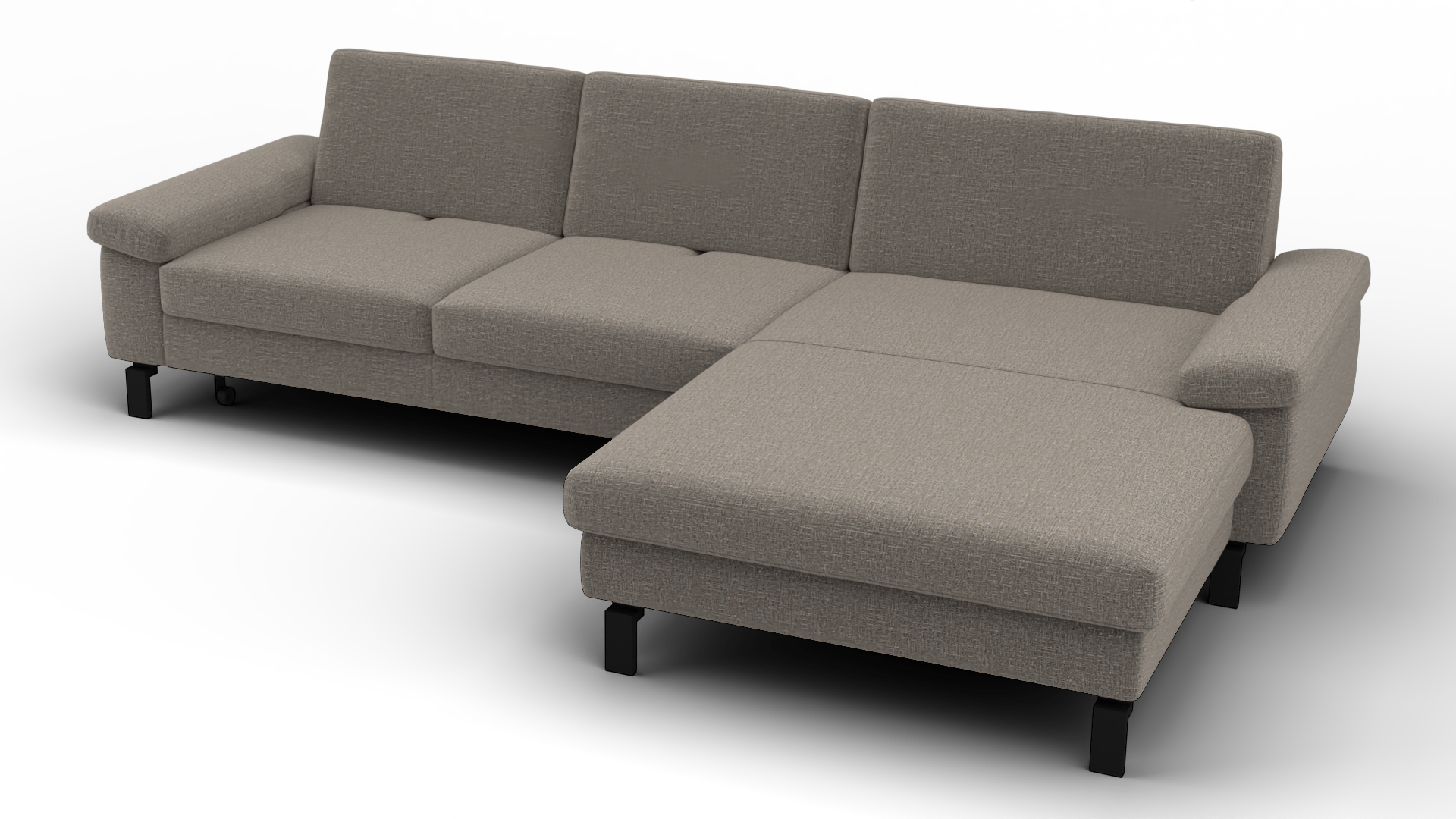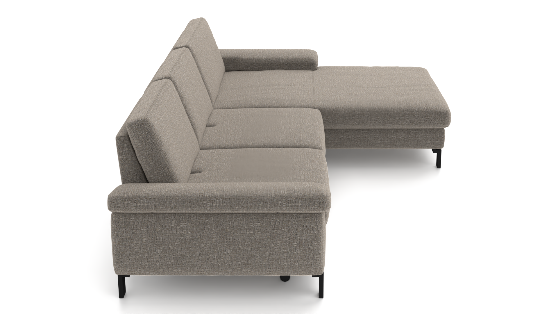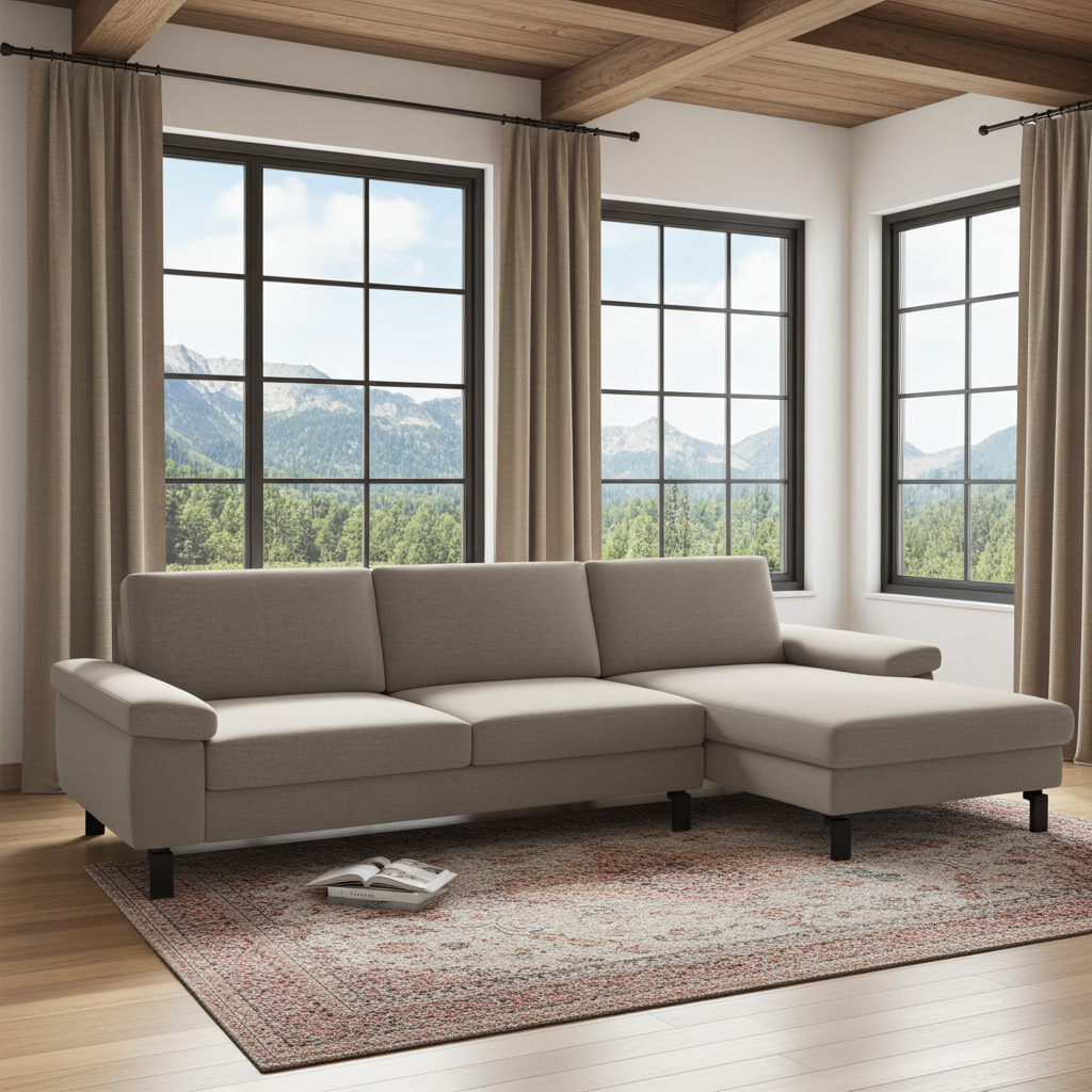 Eleganz in Taupe – das SK 239 Move 2.0 Ecksofa bringt mit seinem luxuriösen Stoffbezug und der modernen Gestellausführung in schwarzem Metall stilvolle Akzente in dein Wohnzimmer. Die harmonische Kombination aus zeitlosem Design und hochwertigem Material sorgt für ein unvergleichliches Sitzerlebnis. Dieses Sofa ist nicht nur ein Blickfang, sondern bietet dir auch den perfekten Ort zum Entspannen. Die durchdachte Eckform nutzt den Raum optimal aus und lässt sich ideal in verschiedene Wohnkonzepte integrieren. Tauche ein in die Welt des Komforts und mache das SK 239 Move 2.0 zu deinem neuen Lieblingsplatz.