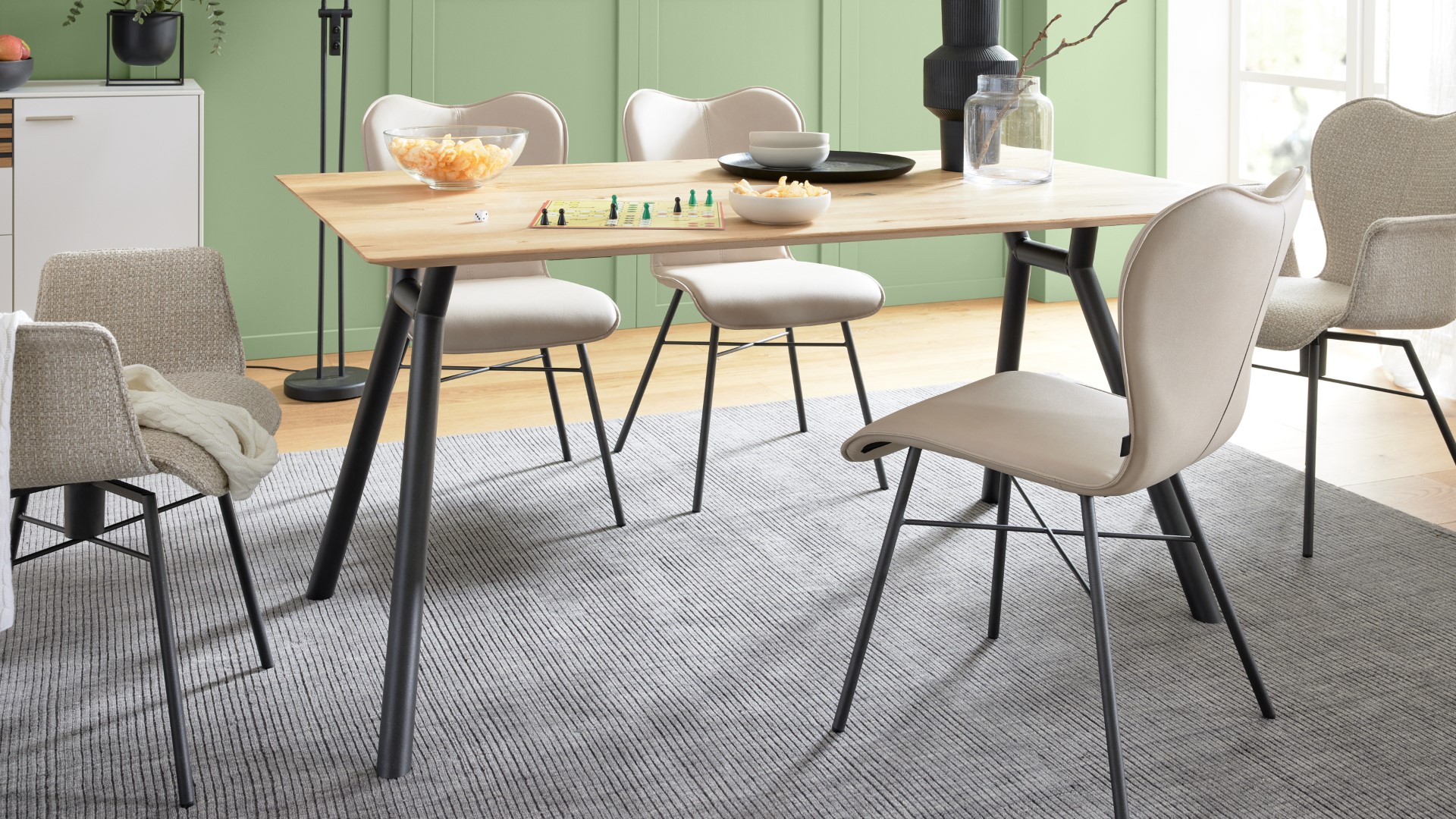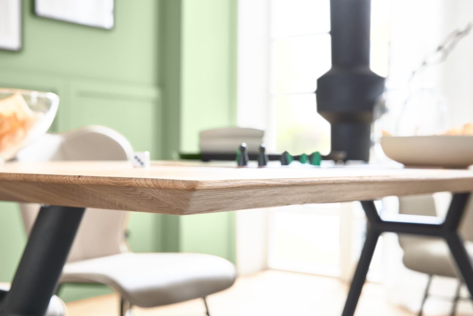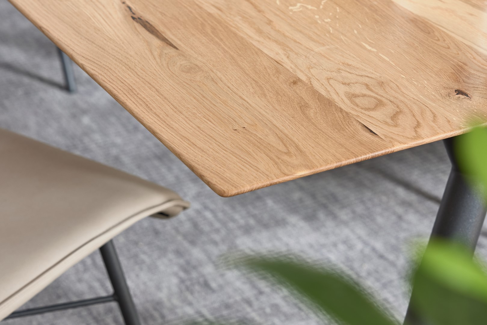 Der Esstisch Interliving 5115 beeindruckt mit seiner massiven Asteiche, die geölt für eine natürliche Ästhetik sorgt. In einem eleganten Zusammenspiel aus braunen und grauen Tönen, ergänzt durch anthrazitfarbenes, pulverbeschichtetes Metallgestell, fügt sich dieser Tisch perfekt in moderne Esszimmer ein. Die rechteckige Form bietet reichlich Platz für gesellige Runden. Dank der matten Oberfläche wirkt der Tisch stets edel und zeitlos. Ob für ein festliches Dinner oder den täglichen Gebrauch - dieser Tisch ist ein vielseitiger Begleiter in deinem Zuhause. Lass dich von der Kombination aus Eiche und Metall inspirieren!