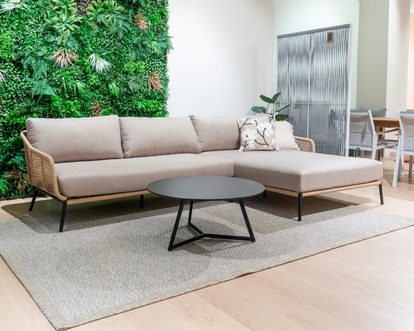 Mit dem stilvollen Moco Rope Gartensofa in elegantem Braun wird jeder Outdoor-Bereich zum luxuriösen Rückzugsort. Der hochwertige Stoffbezug kombiniert mit einem robusten, schwarz pulverbeschichteten Stahlgestell sorgt nicht nur für eine edle Optik, sondern auch für Langlebigkeit. Dank der feuerverzinkten Materialeigenschaften ist das Sofa optimal gegen Witterungseinflüsse geschützt. Ob für entspannte Stunden im Garten oder gesellige Runden auf der Terrasse – dieses Gartensofa bietet dir Komfort und Stil in einem. Setze auf Qualität und Design, um deinen Außenbereich in eine Wohlfühloase zu verwandeln.