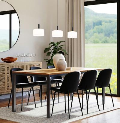 In elegantem Schwarz präsentiert sich die Hängeleuchte Trenton als stilvolles Highlight für jedes Zuhause. Dieses Meisterwerk der Beleuchtung sorgt drinnen für eine warme und einladende Atmosphäre. Schaffe mit Trenton in deinem Wohnraum das perfekte Ambiente für gemütliche Abende oder festliche Anlässe. Die klare Linienführung und das zeitlose Design machen diese Leuchte zu einem vielseitigen Begleiter, der sich nahtlos in verschiedene Einrichtungsstile einfügt. Erlebe, wie Trenton nicht nur Licht spendet, sondern auch als dekoratives Element beeindruckt. Lass dich von der Kombination aus Funktionalität und Ästhetik begeistern und setze auf Qualität, die sichtbar ist.