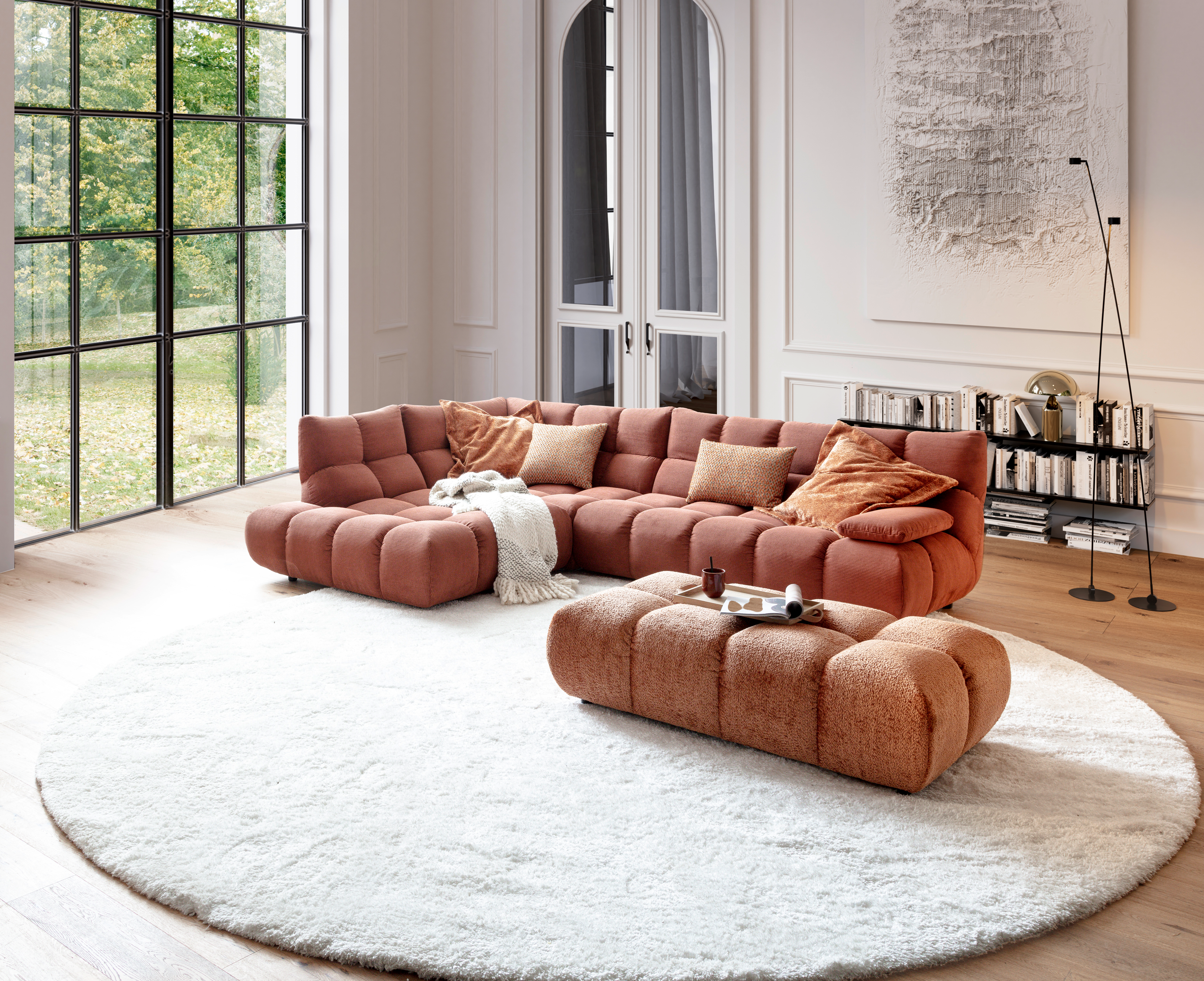 Erlebe ultimativen Komfort und stilvolles Design mit dem SK781 Graceland Ecksofa in einem warmen Rostton. Dieses Ecksofa bietet nicht nur ausreichend Platz zum Entspannen, sondern setzt auch ein elegantes Statement in deinem Wohnzimmer. Die hochwertige Verarbeitung und das zeitlose Design machen das SK781 Graceland Ecksofa zu einem langlebigen Begleiter in deinem Zuhause. Lass dich von seiner Bequemlichkeit und dem modernen Look begeistern. Egal, ob zum Kuscheln, Entspannen oder als Highlight für Gäste – dieses Ecksofa passt sich deinen Bedürfnissen an und verleiht jedem Raum eine besondere Atmosphäre.