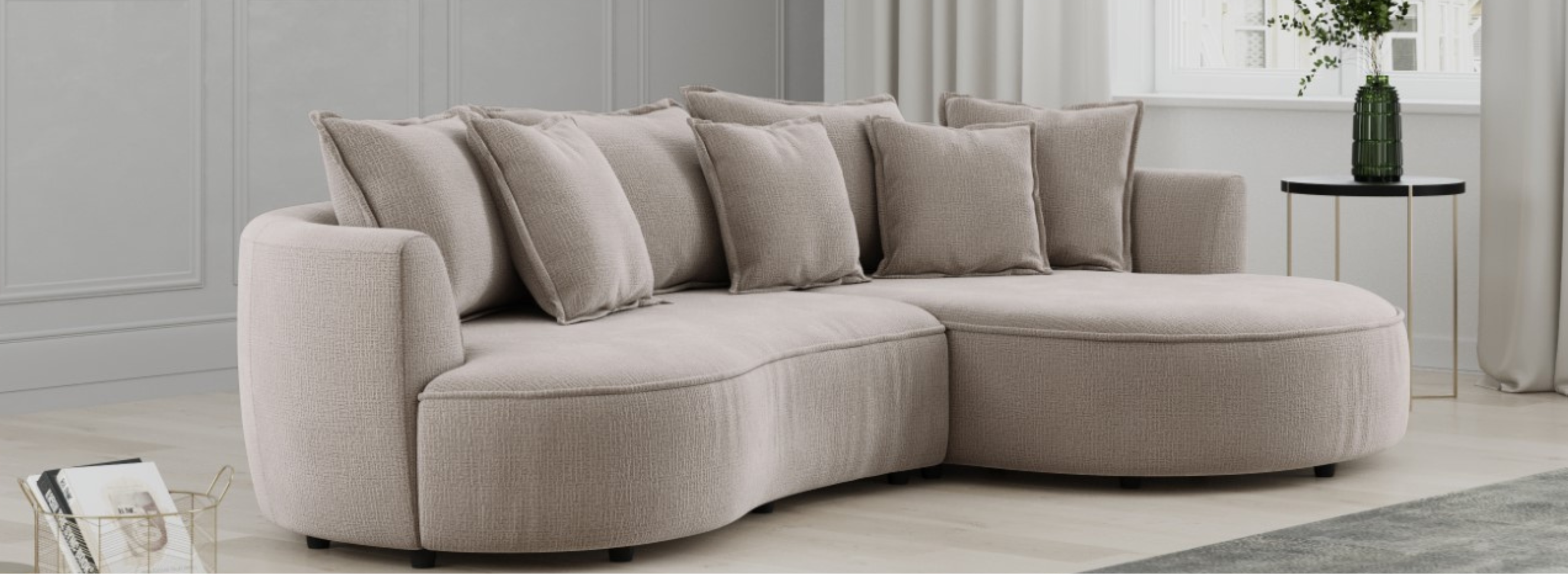 Entdecke das elegante Ecksofa in zeitlosem Beige, das sich perfekt in dein Wohnzimmer einfügt. Diese Couchgarnitur bietet nicht nur stilvolles Design, sondern auch ultimativen Komfort, um entspannte Stunden zu genießen. Die geschmackvolle Farbgebung verleiht deinem Raum eine warme und einladende Atmosphäre, während die großzügige Sitzfläche ausreichend Platz für Familie und Freunde bietet. Egal, ob du einen Ort zum Entspannen nach einem langen Tag suchst oder eine gemütliche Ecke für gesellige Abende schaffen möchtest, dieses Ecksofa wird deinen Ansprüchen gerecht. Gönn dir den Luxus und verwandle dein Zuhause in eine Wohlfühloase.