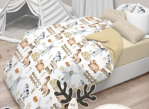 Produktinformationen "Kinderbettwäsche Bauernhof weiß Baumwolle"