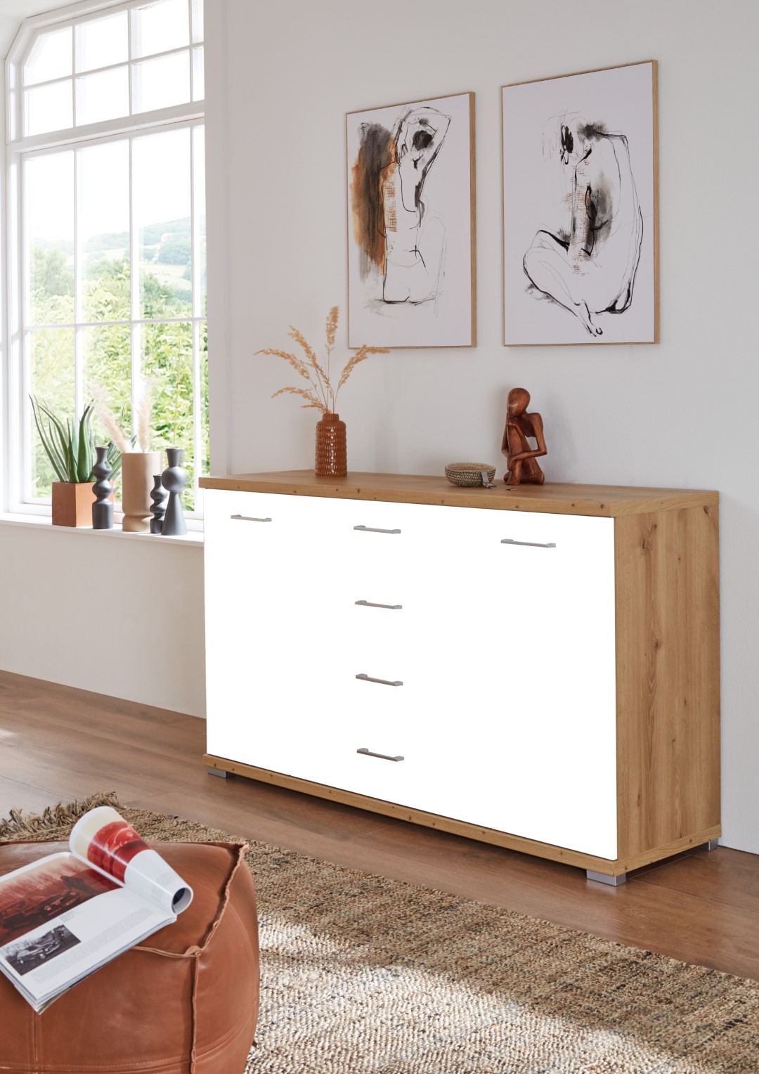 Produktinformationen "Kommode Padua Eiche Nachbildung Absetzung weiß"