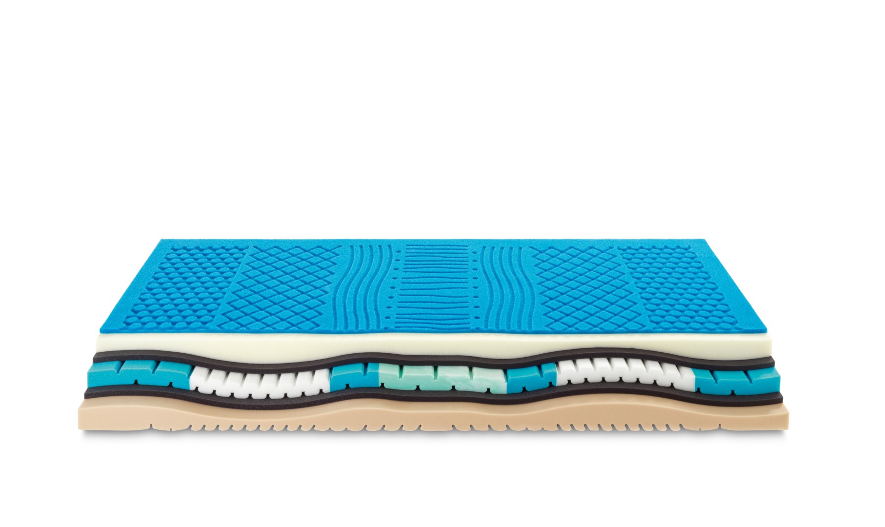 Optipure Pro ist die Weiterentwicklung von Optipure – mit 6 Schichten und 7 ergonomischen Zonen unterschiedlicher Festigkeit für ein ausgewogenes Verhältnis zwischen Komfort und Unterstützung. Die neue Schicht aus Super Fresh-Schaum verbessert die Belüftung, während die viskoelastische Schicht sich dem Körper anpasst und einen angenehmen Massageeffekt bietet. Die Basis aus Evocell, kombiniert mit umweltfreundlichen Schaumschichten, ist mit Rillen versehen, um gezielte Unterstützung und optimale Luftzirkulation zu gewährleisten.