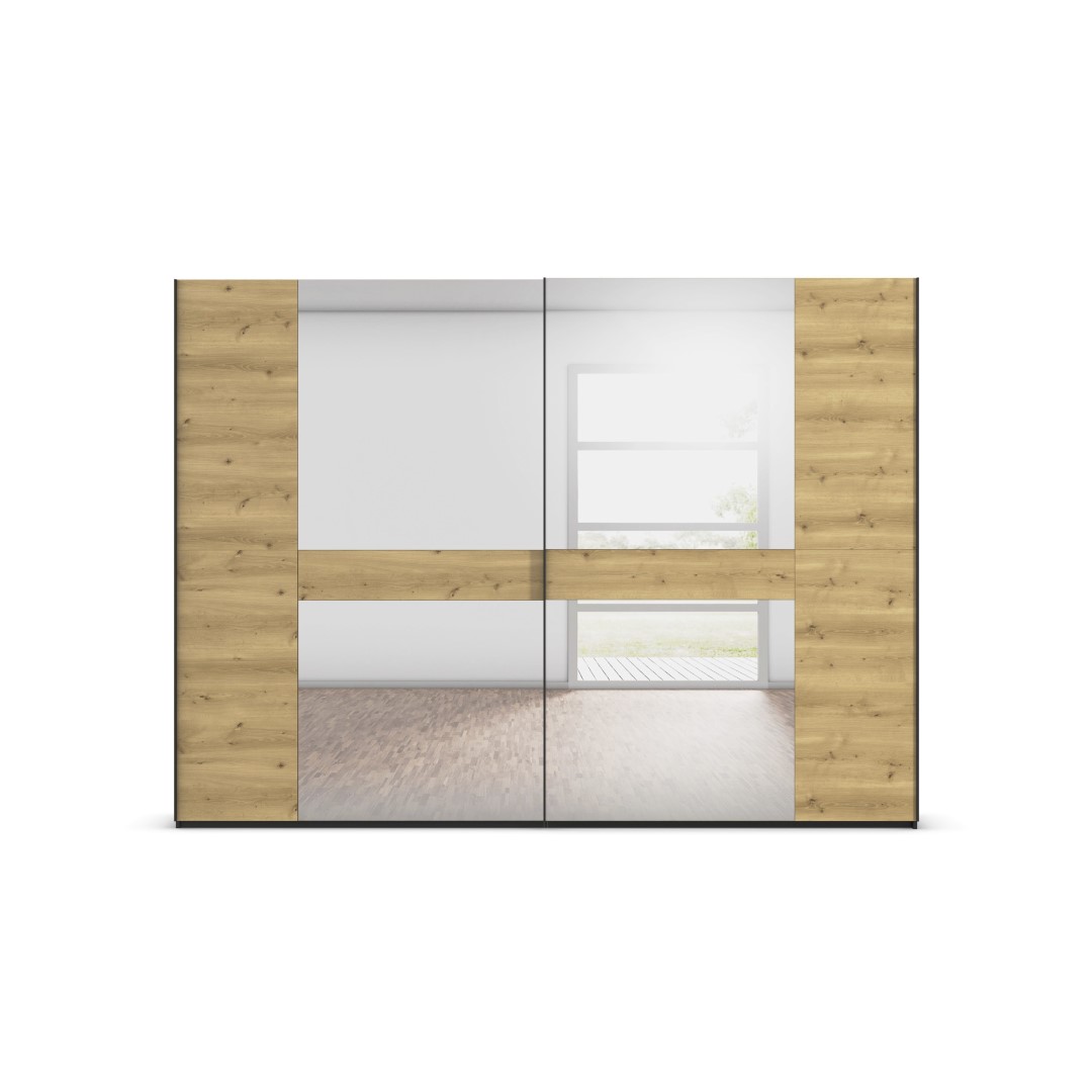 Entdecken Sie den KORFU Schwebetürenschrank, ein stilvolles und funktionales Möbelstück für Ihr Zuhause. Der Schrank ist in den ansprechenden Farben Eiche Bianco und Graphit erhältlich, die in jedem Wohnambiente elegante Akzente setzen. Dieses Modell zeichnet sich durch seine Schwebetüren aus, die für einen reibungslosen und leisen Betrieb sorgen. Der KORFU Schwebetürenschrank bietet ausreichend Stauraum für Kleidung, Bettwäsche und andere Gegenstände, und hält Ihr Zuhause ordentlich und gut organisiert. Erleben Sie die Kombination aus Ästhetik und Praktikabilität mit dem KORFU Schwebetürenschrank.