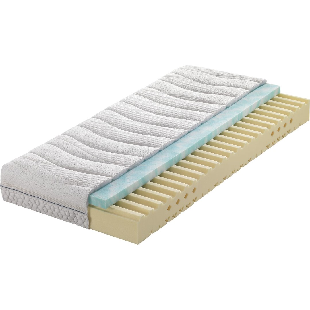 Die AquaRelaxx Matratze in strahlendem Weiß bietet dir mit ihrer 7-Zonen-Technologie eine maßgeschneiderte Unterstützung für jede Körperpartie. Tauche ein in ein neues Schlafgefühl, das durch die intelligente Zoneneinteilung für optimale Druckentlastung sorgt. Dein Rücken, deine Schultern und deine Hüften erfahren so die perfekte Balance zwischen Komfort und Stützung. Egal, ob du auf dem Rücken, der Seite oder dem Bauch schläfst, die AquaRelaxx passt sich ideal deinen Bedürfnissen an. Erlebe erholsame Nächte und starte jeden Tag voller Energie und Frische. Entdecke jetzt den Unterschied und gönn dir den Schlaf, den du verdienst!