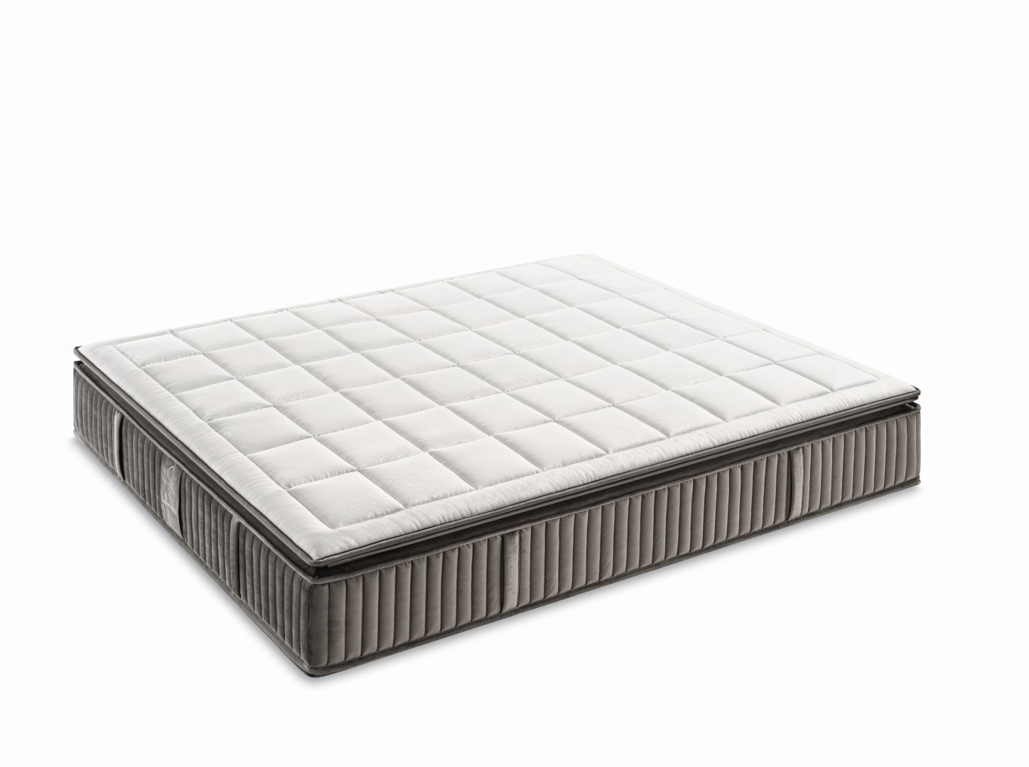 Der Hybrido-Topper vervollständigt das Schlaferlebnis mit einer besonders anschmiegsamen und eleganten Oberfläche. Das gesteppte Muster, inspiriert vom geometrischen Design der Matratze, harmoniert perfekt mit der Velours-Einfassung – erhältlich in denselben drei Farbtönen: Polarweiß, Perlgrau und Graphitschwarz. Im Inneren sorgt die LAVATECH-Polsterung durch die natürliche Abgabe von Ferninfrarotstrahlen für eine angeregte Mikrozirkulation und tiefes Wohlbefinden. Die Unterseite ist mit einem rutschhemmenden Stoff versehen, der den Topper sicher in Position hält – ganz ohne Befestigungen. Pflegeleicht und funktional: Er kann in einem Fachbetrieb mit Kaltwasser gewaschen werden.