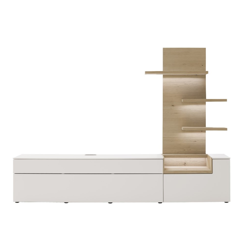 Elegante Weißtöne treffen auf hochwertige Holzverarbeitung: Die Wohnwand Interliving 2031 verwandelt jeden Raum in ein stilvolles Ambiente. Gefertigt aus edler Risseiche, besticht sie durch ihre natürliche Maserung und robustes Design. Diese Wohnwand bietet nicht nur ausreichend Stauraum, sondern auch eine perfekte Bühne für deine Lieblingsdekorationen. Ob Bücher, Vasen oder persönliche Schätze – alles findet seinen Platz. Die Kombination aus moderner Linienführung und zeitlosem Weiß macht sie zu einem vielseitigen Highlight in deinem Wohnbereich. Erlebe, wie Funktionalität und Ästhetik in perfekter Harmonie miteinander verschmelzen.
