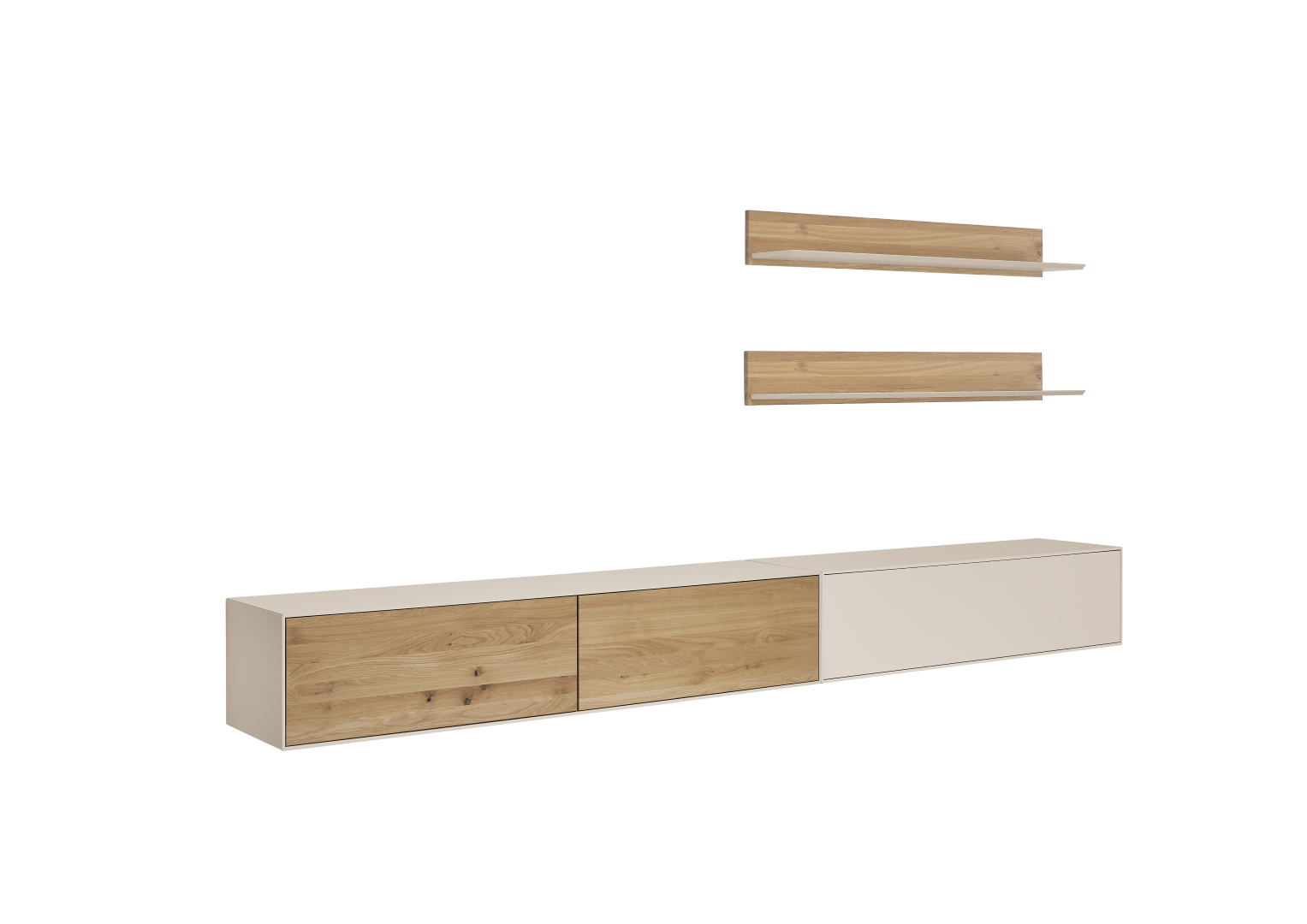 Die Wohnwand Tessin beeindruckt durch ihre edlen Farbtöne in Eiche und Sand, die deinem Wohnzimmer einen Hauch von Eleganz verleihen. Gefertigt aus einer Kombination von MDF und massiver Wildeiche, bietet sie nicht nur Stabilität, sondern auch eine natürliche Schönheit, die durch die geölte und lackierte Oberfläche hervorgehoben wird. Diese stilvolle Wohnwand ist ideal für alle, die Wert auf Qualität und Design legen. Lass dich von der natürlichen Ausstrahlung und den funktionalen Aspekten dieser Wohnwand verzaubern und verwandle dein Zuhause in einen Ort der Ruhe und Ästhetik.