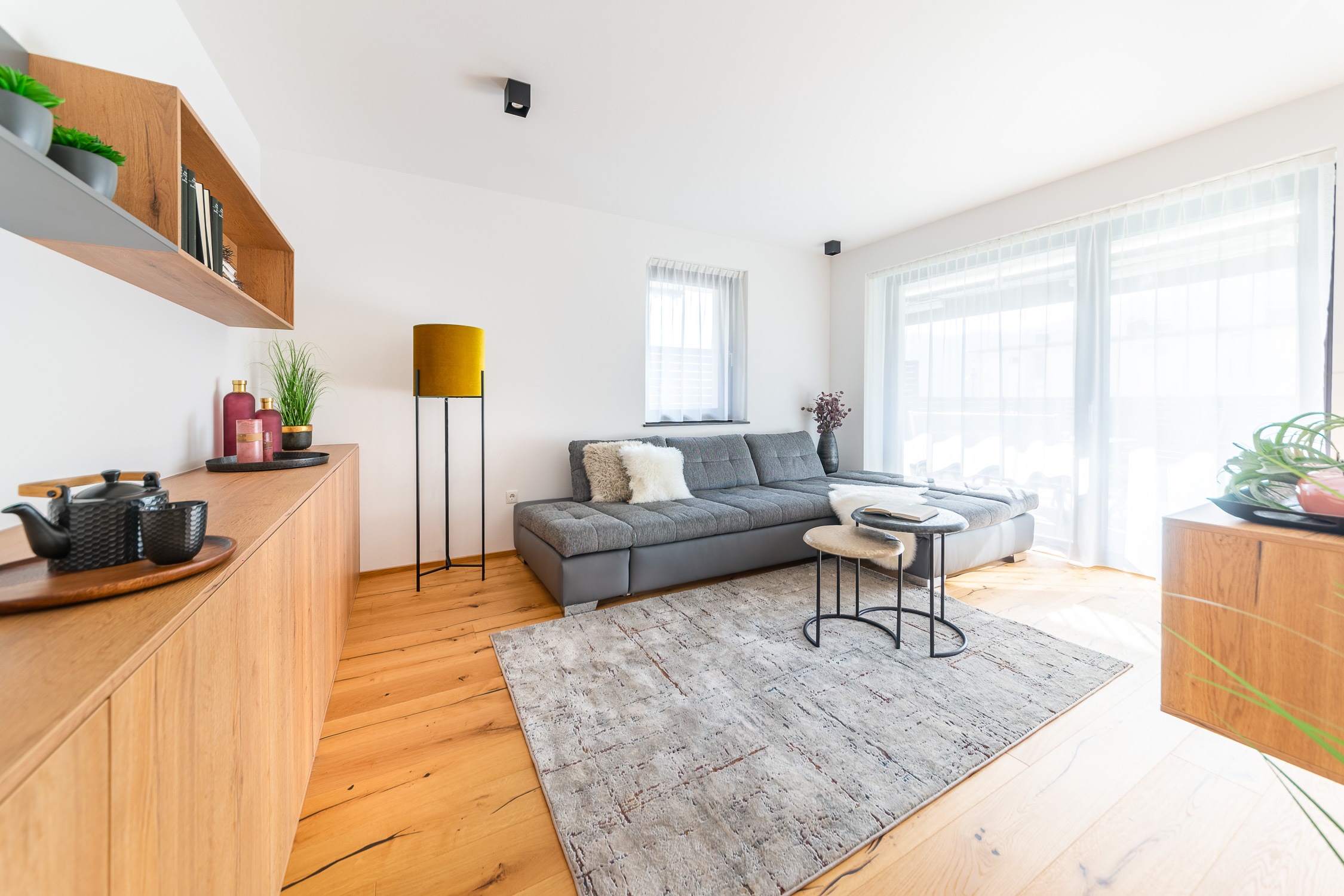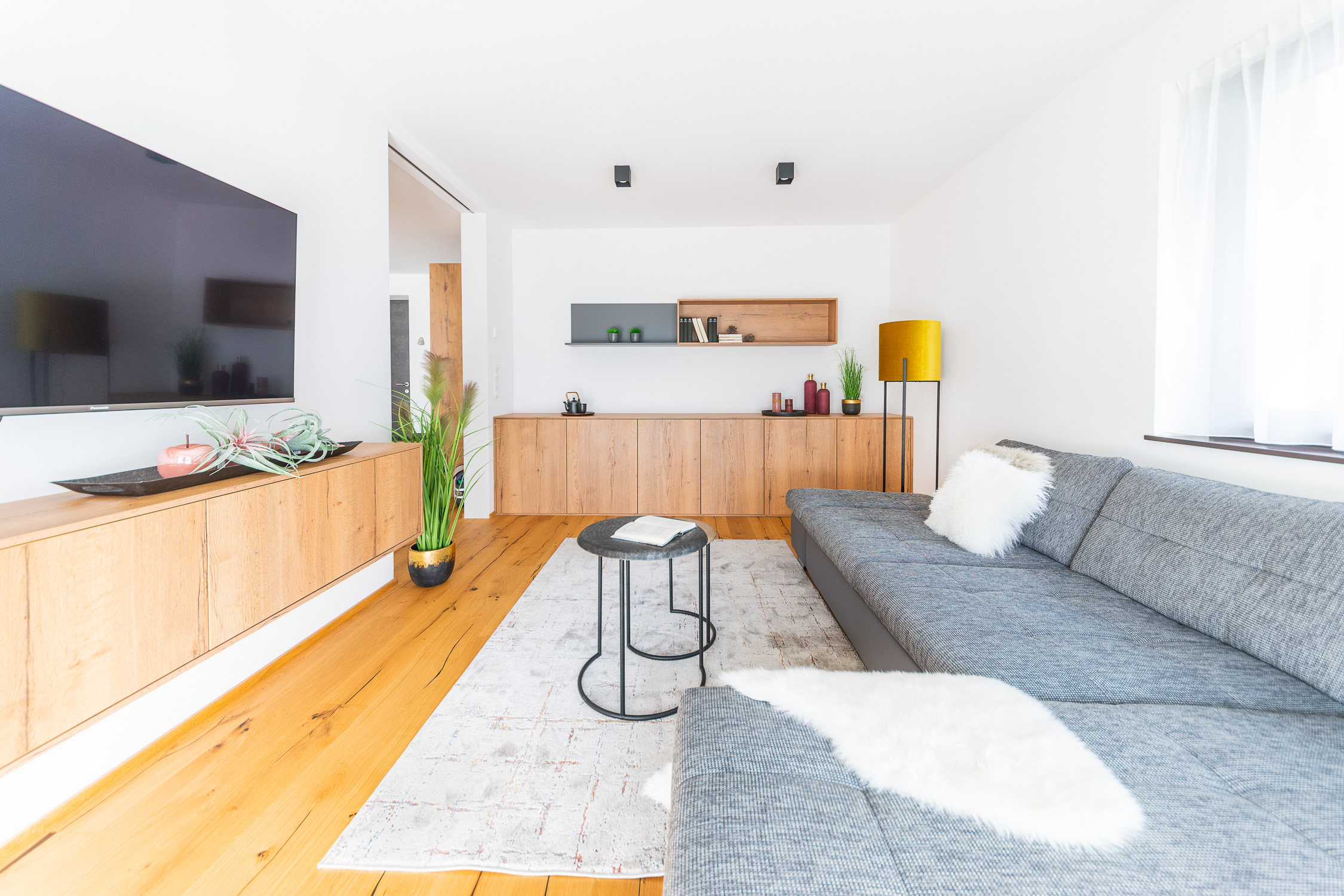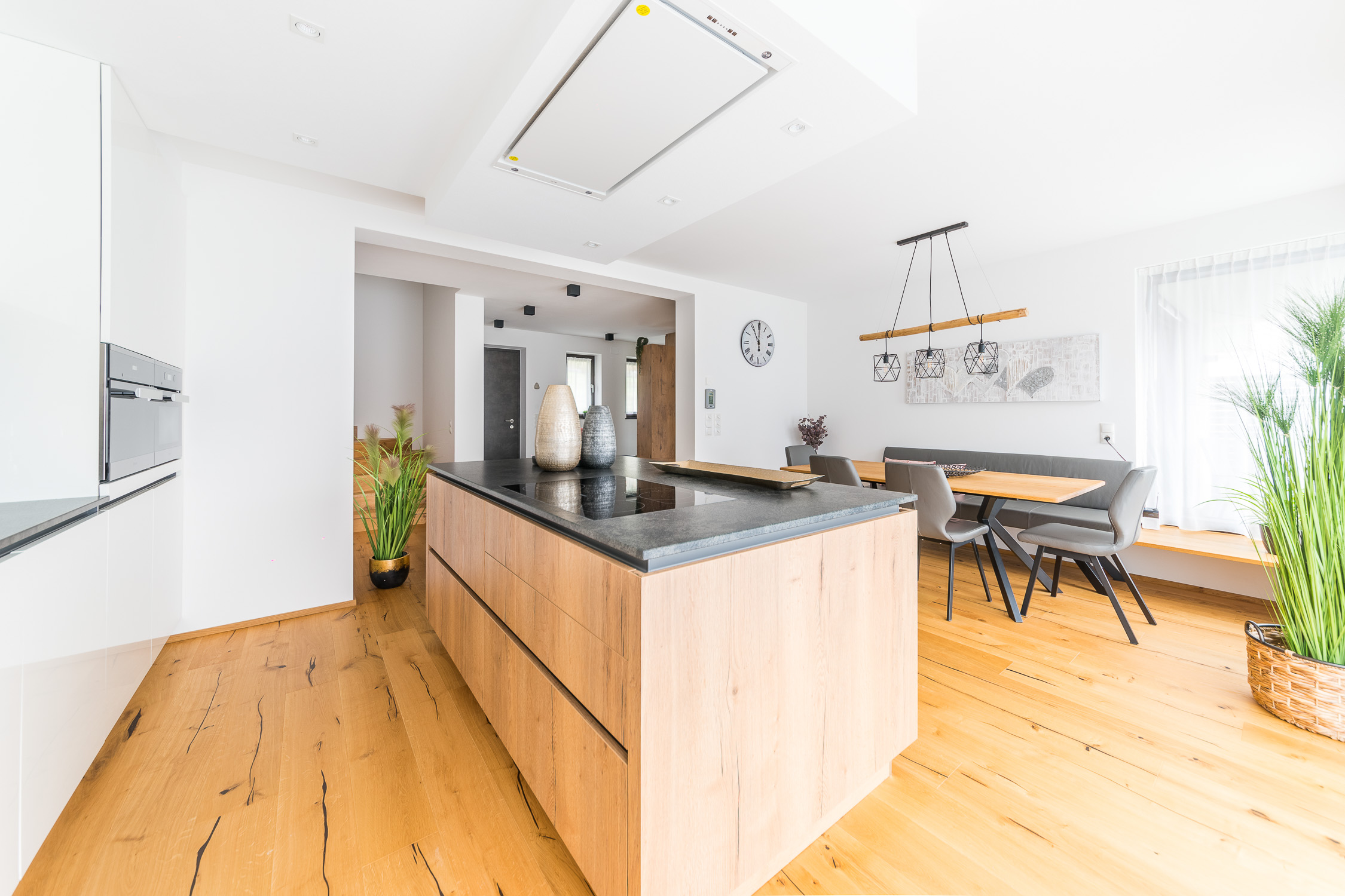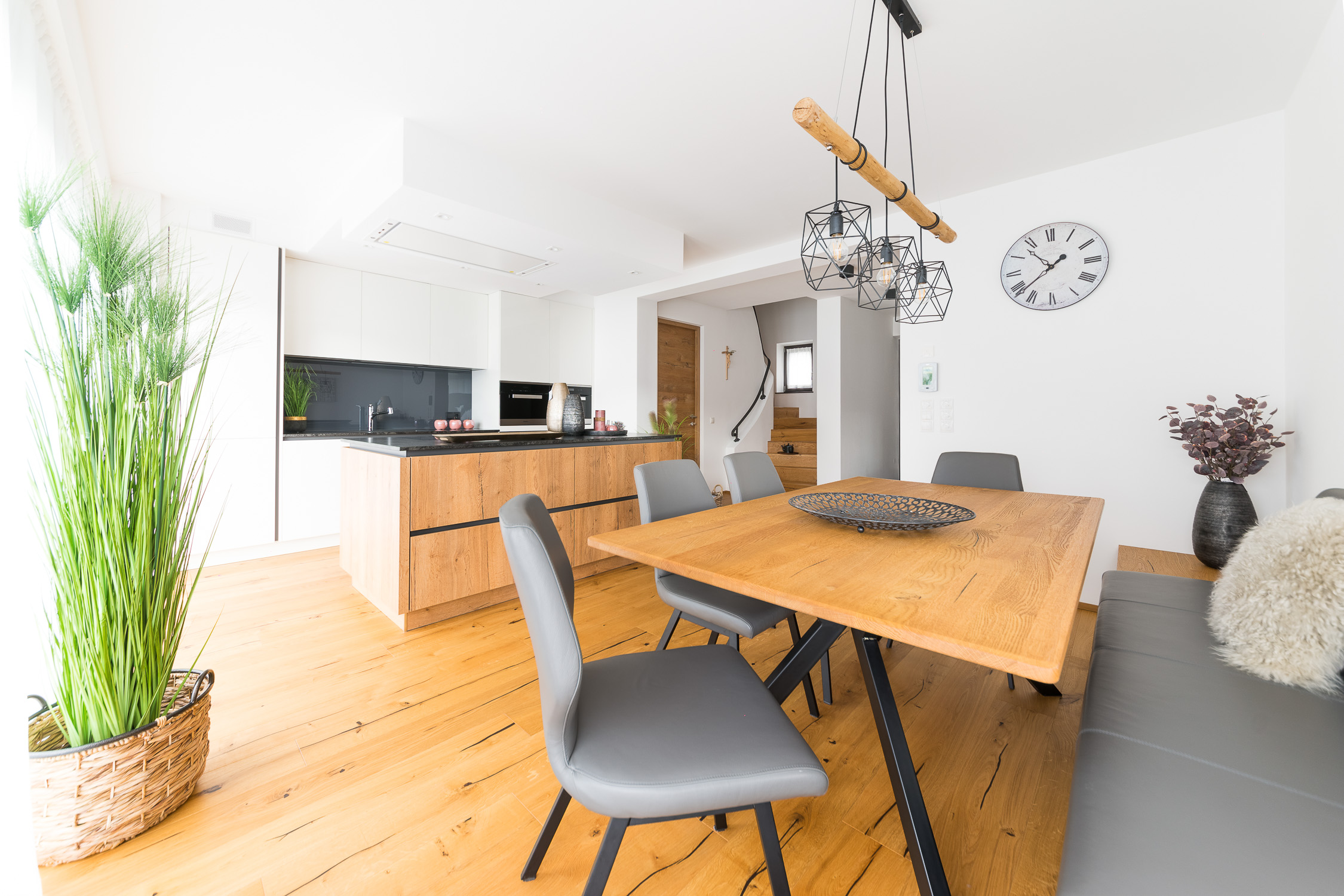 Unsere Einrichtungsprofis begleiten Sie von der individuellen Planung bis hin zur passgenauen Montage, um aus einer Wohnung Ihr persönliches Zuhause zu machen. Für dieses Projekt haben wir die Diele, den Eingangsbereich, die Küche, den Essbereich, das Wohnzimmer und das Bad gestaltet. Außerdem haben wir Lampen und viele Dekoartikel aus unserem Fachsortiment integriert.