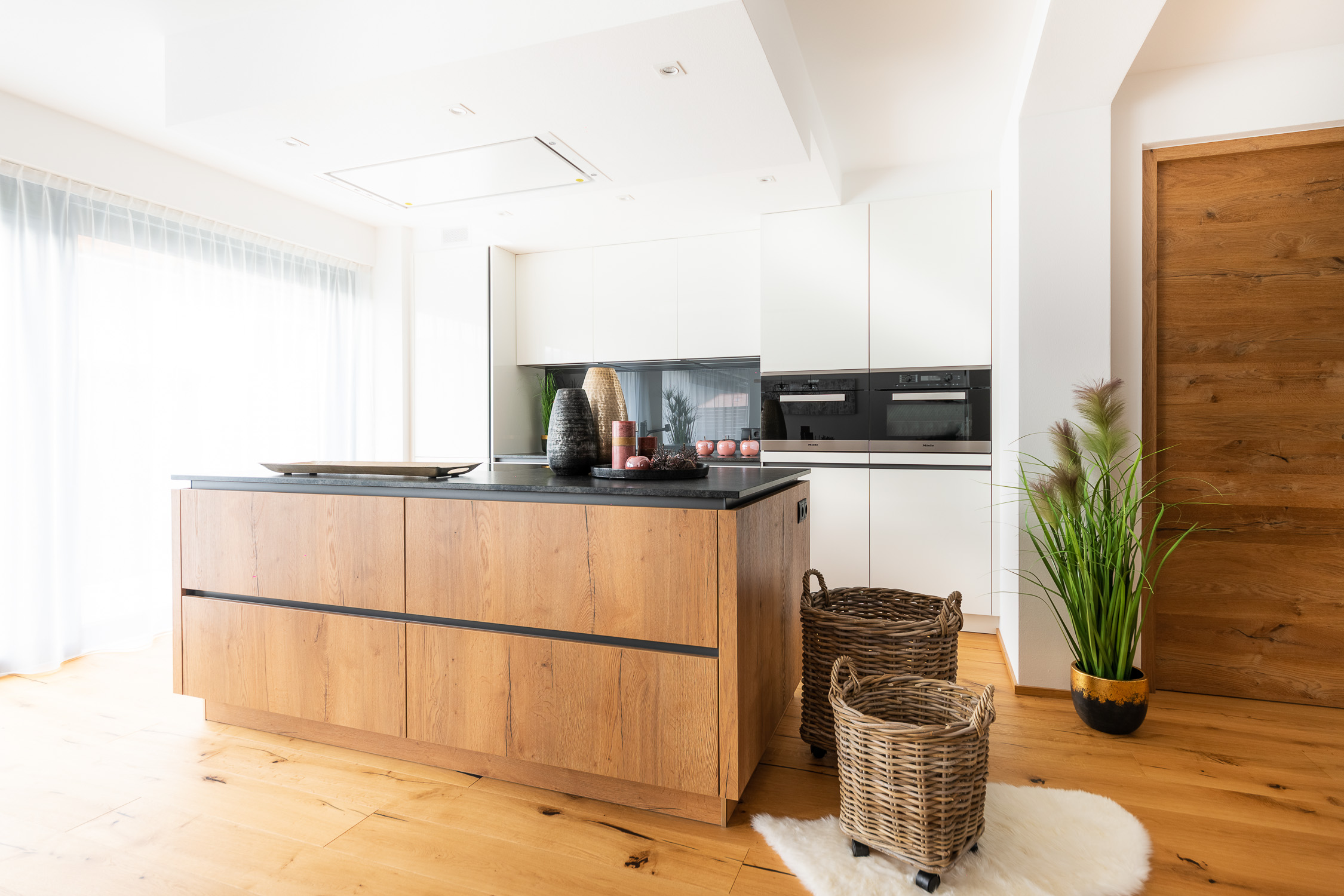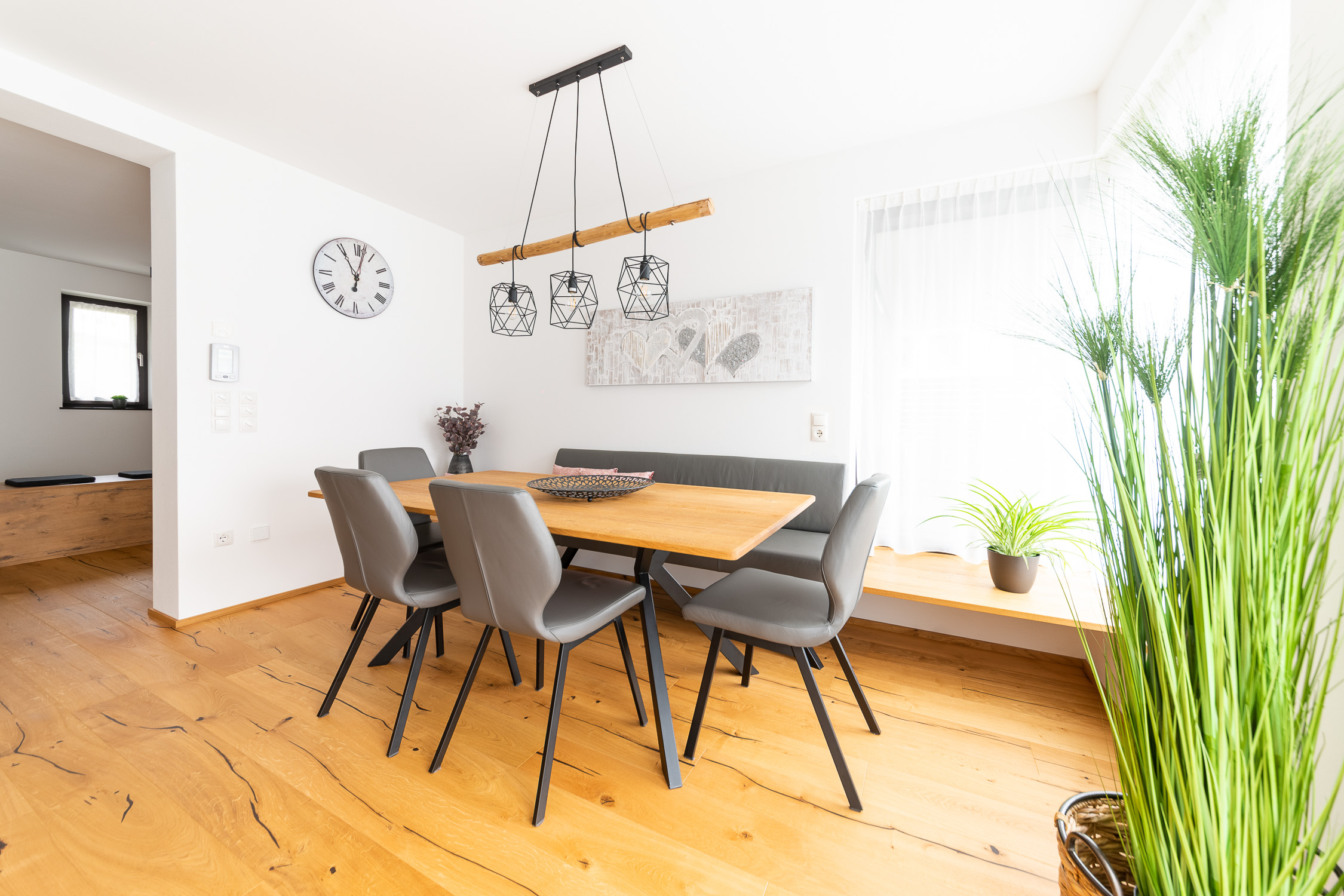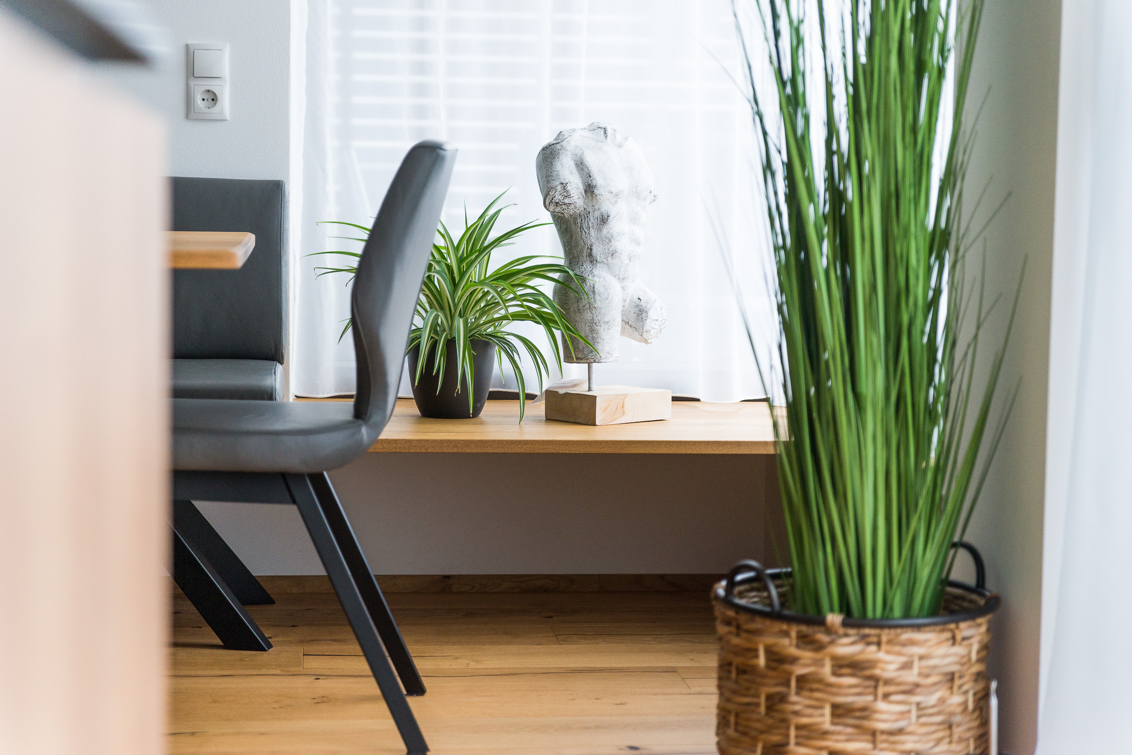 Unsere Einrichtungsprofis begleiten Sie von der individuellen Planung bis hin zur passgenauen Montage, um aus einer Wohnung Ihr persönliches Zuhause zu machen. Für dieses Projekt haben wir die Diele, den Eingangsbereich, die Küche, den Essbereich, das Wohnzimmer und das Bad gestaltet. Außerdem haben wir Lampen und viele Dekoartikel aus unserem Fachsortiment integriert.