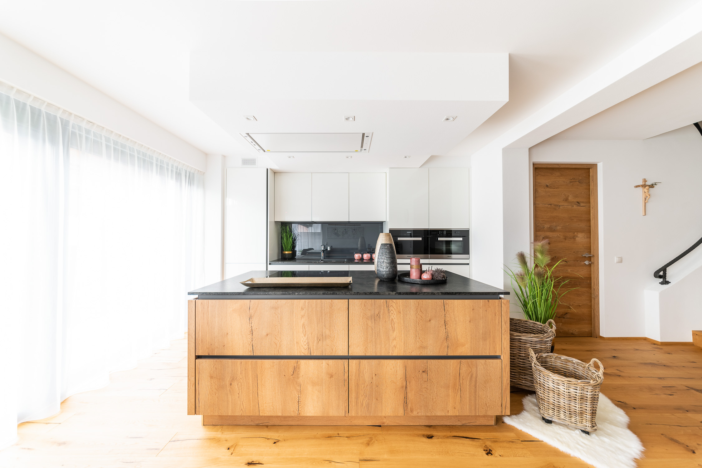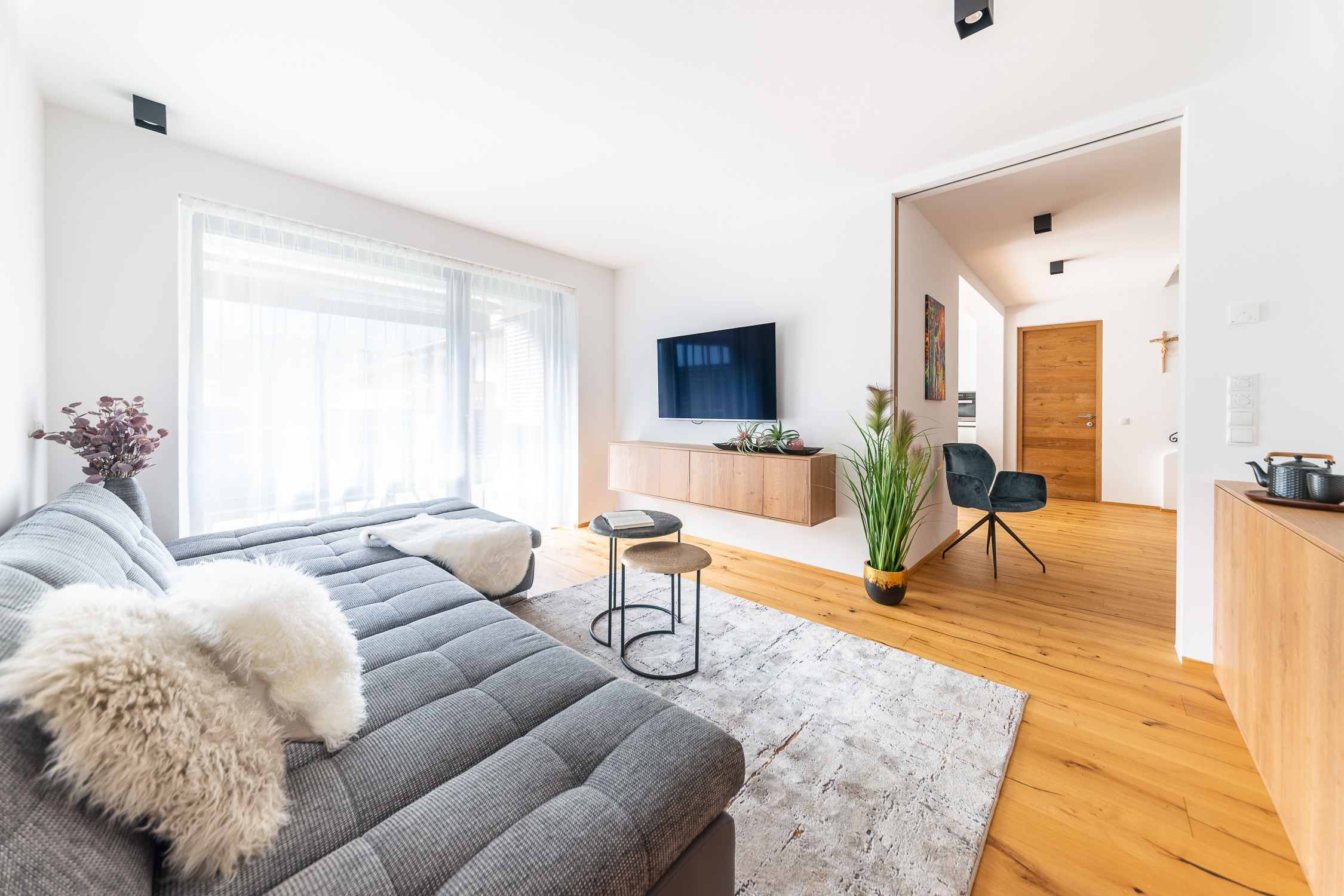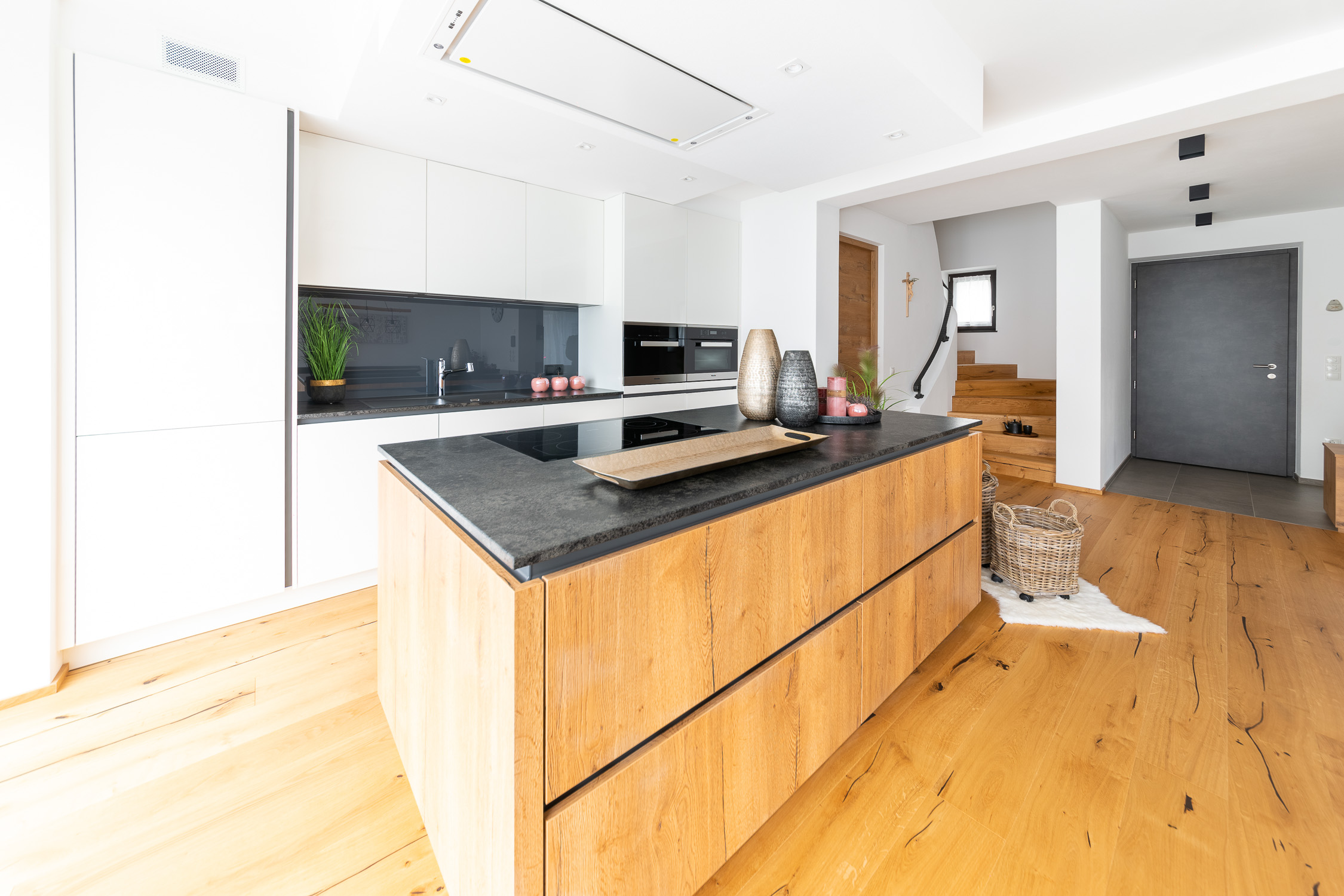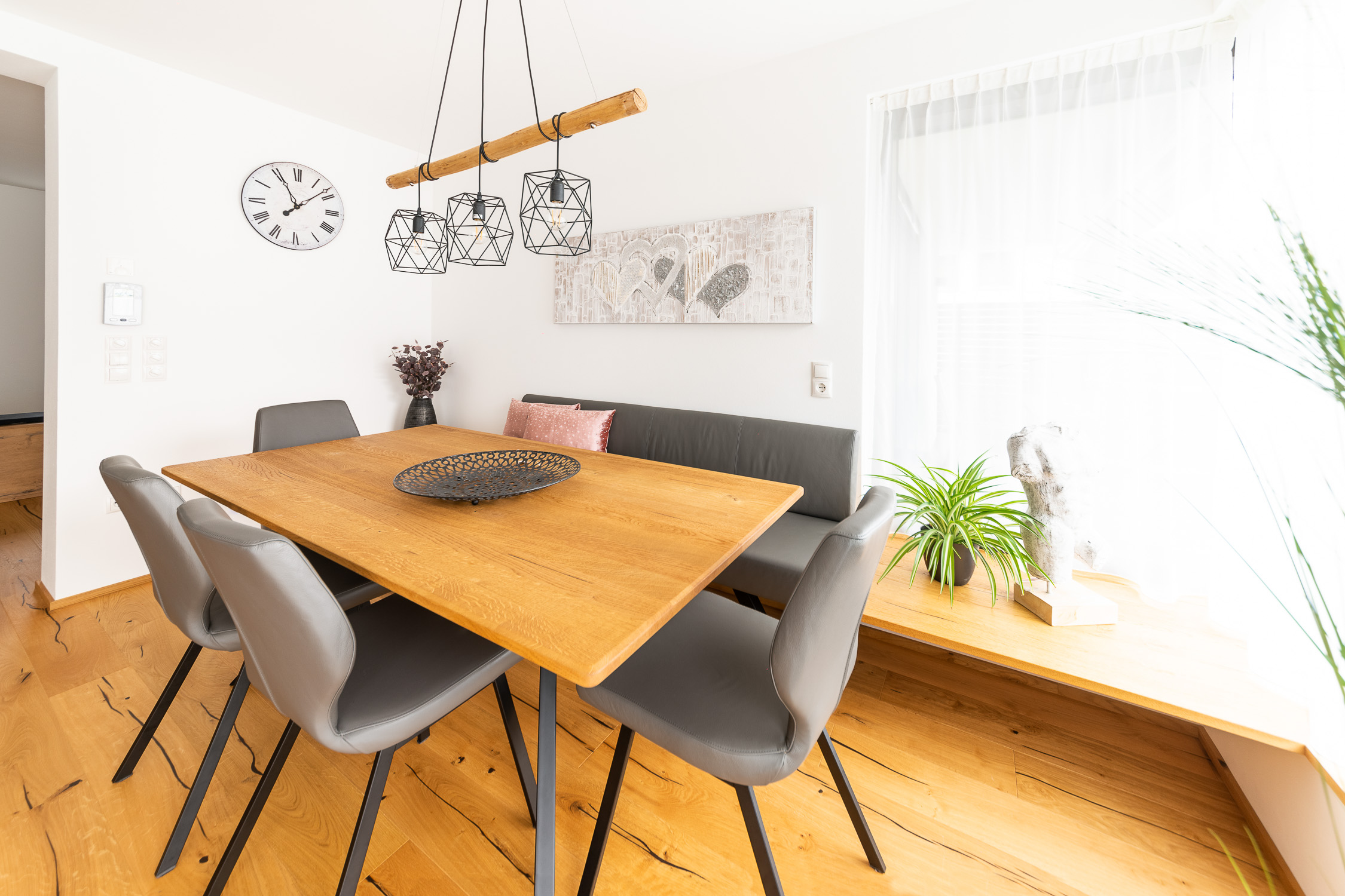 Unsere Einrichtungsprofis begleiten Sie von der individuellen Planung bis hin zur passgenauen Montage, um aus einer Wohnung Ihr persönliches Zuhause zu machen. Für dieses Projekt haben wir die Diele, den Eingangsbereich, die Küche, den Essbereich, das Wohnzimmer und das Bad gestaltet. Außerdem haben wir Lampen und viele Dekoartikel aus unserem Fachsortiment integriert.
