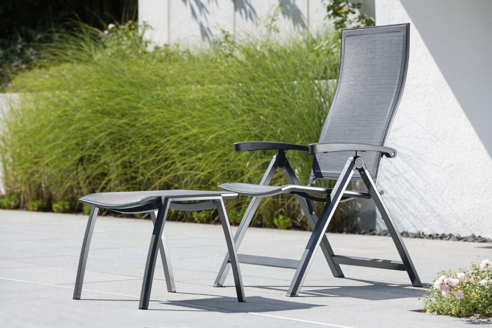 Stilvoll in Karbon: Der Gartenhocker Modell Kari in elegantem Grau überzeugt durch seine moderne Optik und die hochwertige Textilene-Bespannung. Das pulverbeschichtete Aluminiumgestell in Anthrazit sorgt für Stabilität und Langlebigkeit. Funktionalität trifft Design, denn dieser Hocker ist nicht nur UV-beständig, sondern auch frost- und hitzebeständig. So bleibt er das ganze Jahr über ein treuer Begleiter in deinem Garten. Zudem zeichnet sich das Material durch seine Pflegeleichtigkeit und Strapazierfähigkeit aus. Ob Regen oder Sonnenschein, dieser wetterfeste Hocker hält allem stand und bleibt reißfest, damit du sorglos entspannen kannst.