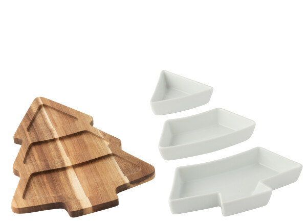 | Bestehend aus: | 1 Holzunterlage, 3 Snackschalen |
