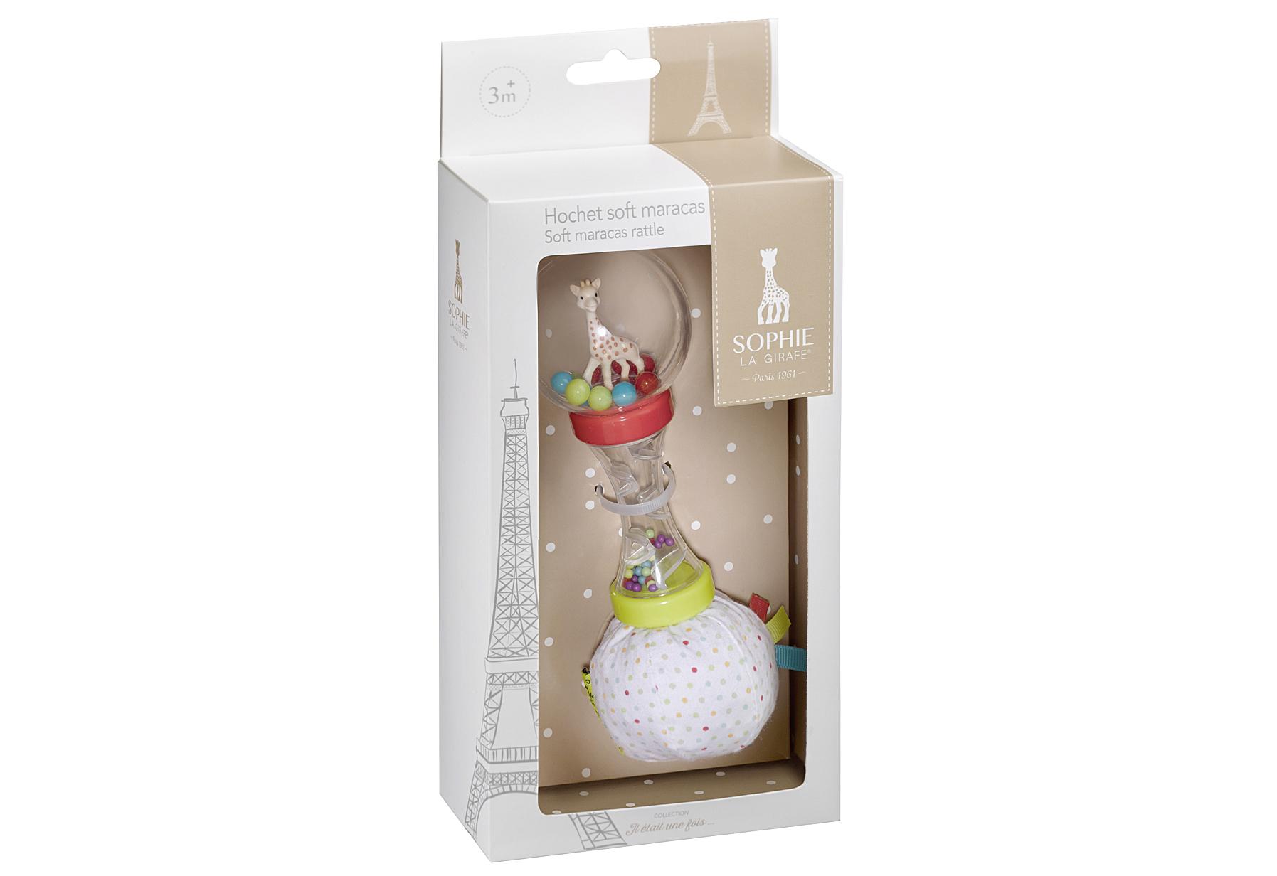 Produktinformationen "Soft Maracas Rassel Sophie la girafe - Ein Must-Have unter den Rassel, die Soft Maracas-Rassel. Dank der ergonomischen Form ist die Rassel leicht zu greifen. Beim Schütteln schlagen die bunten Kügelchen im Inneren aneinander und unterhalten das Baby ..."