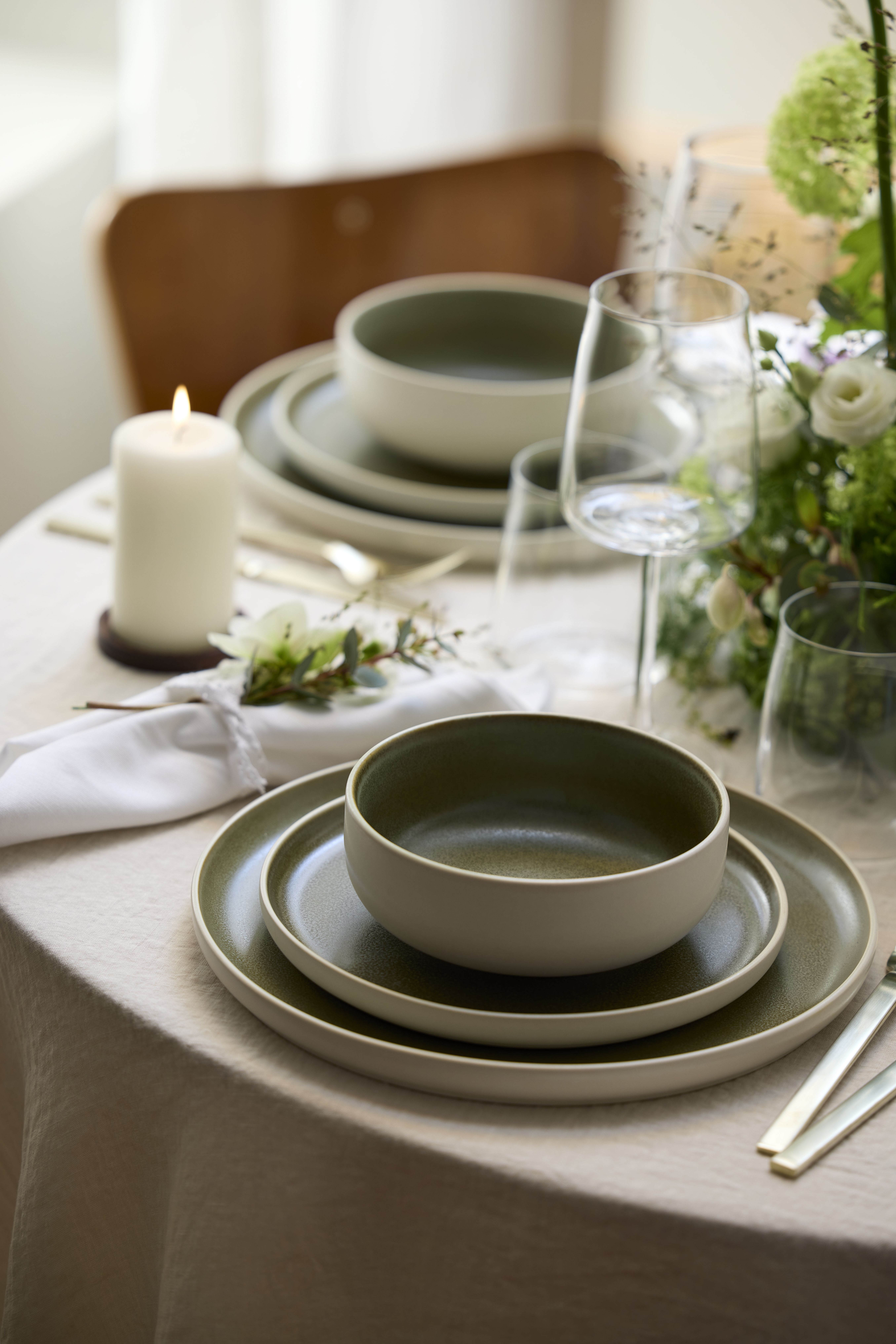 Produktinformationen "Speiseteller North 27cm Matte white/Matte moss Steinzeug"