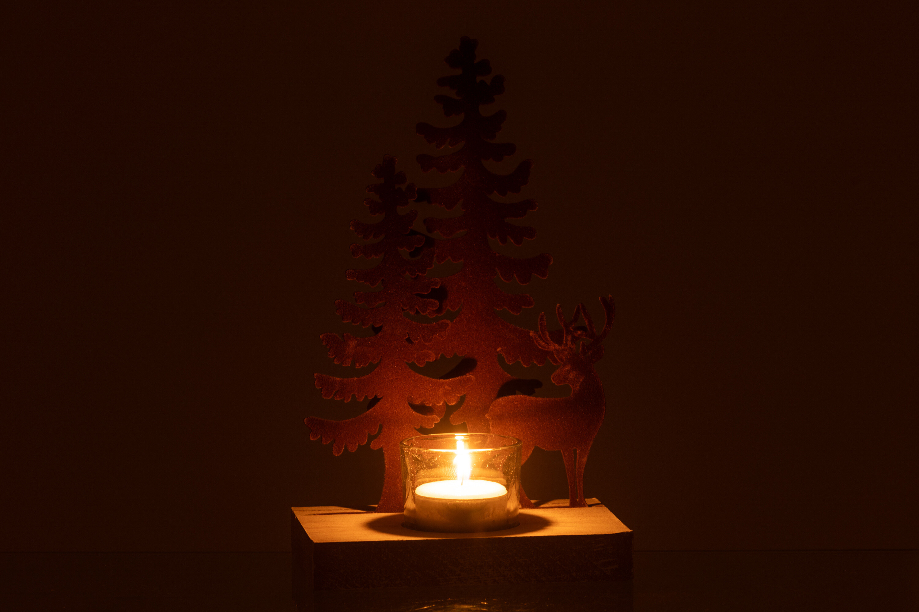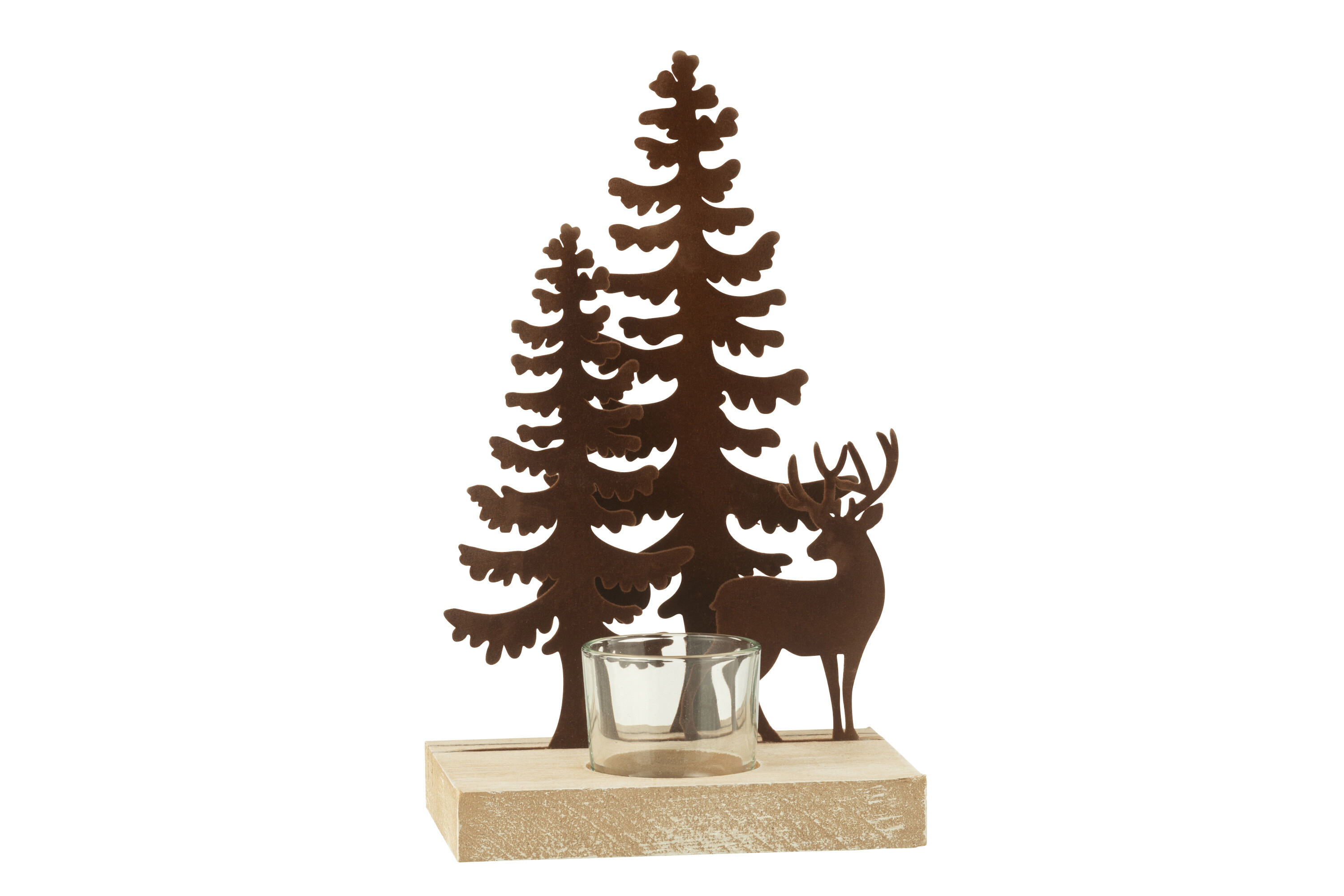 Produktinformationen "Teelichthalter Rentier braun Glas Holz Metall"