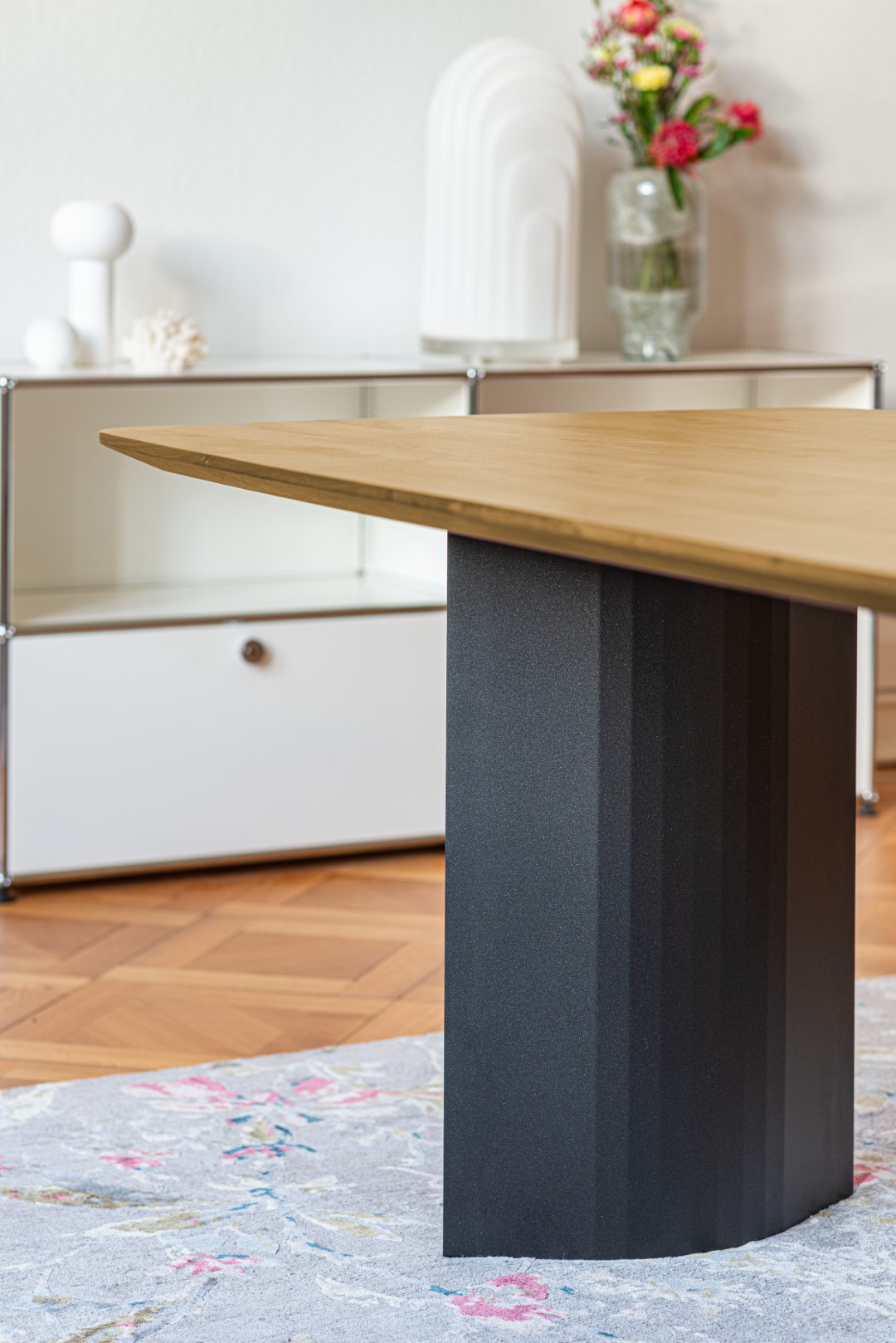 Massives Eichenholz trifft auf moderne Eleganz – der Tisch der Tercio Edition bringt natürlichen Charme in dein Zuhause. Die rechteckige Form und die warme, braune Eiche mit geölter Oberfläche strahlen zeitlose Schönheit aus. Stabilität und Stil vereint das pulverbeschichtete Stahlgestell in edlem Schwarz. Dieser Tisch ist nicht nur ein funktionales Möbelstück, sondern auch ein Statement für dein Esszimmer oder Büro. Lass dich von der erstklassigen Verarbeitung und dem harmonischen Design begeistern, das deinen Raum stilvoll aufwertet. Erlebe den Unterschied, den hochwertige Materialien und durchdachtes Design machen können.