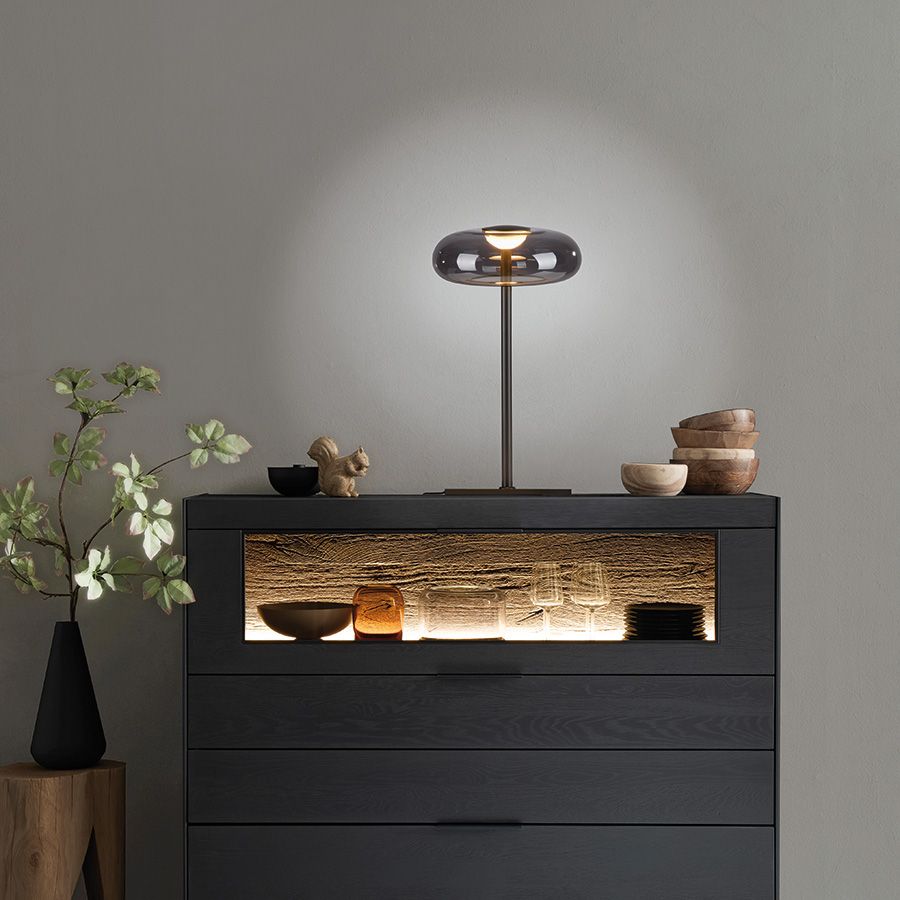 Tischleuchte Posh grau Glas