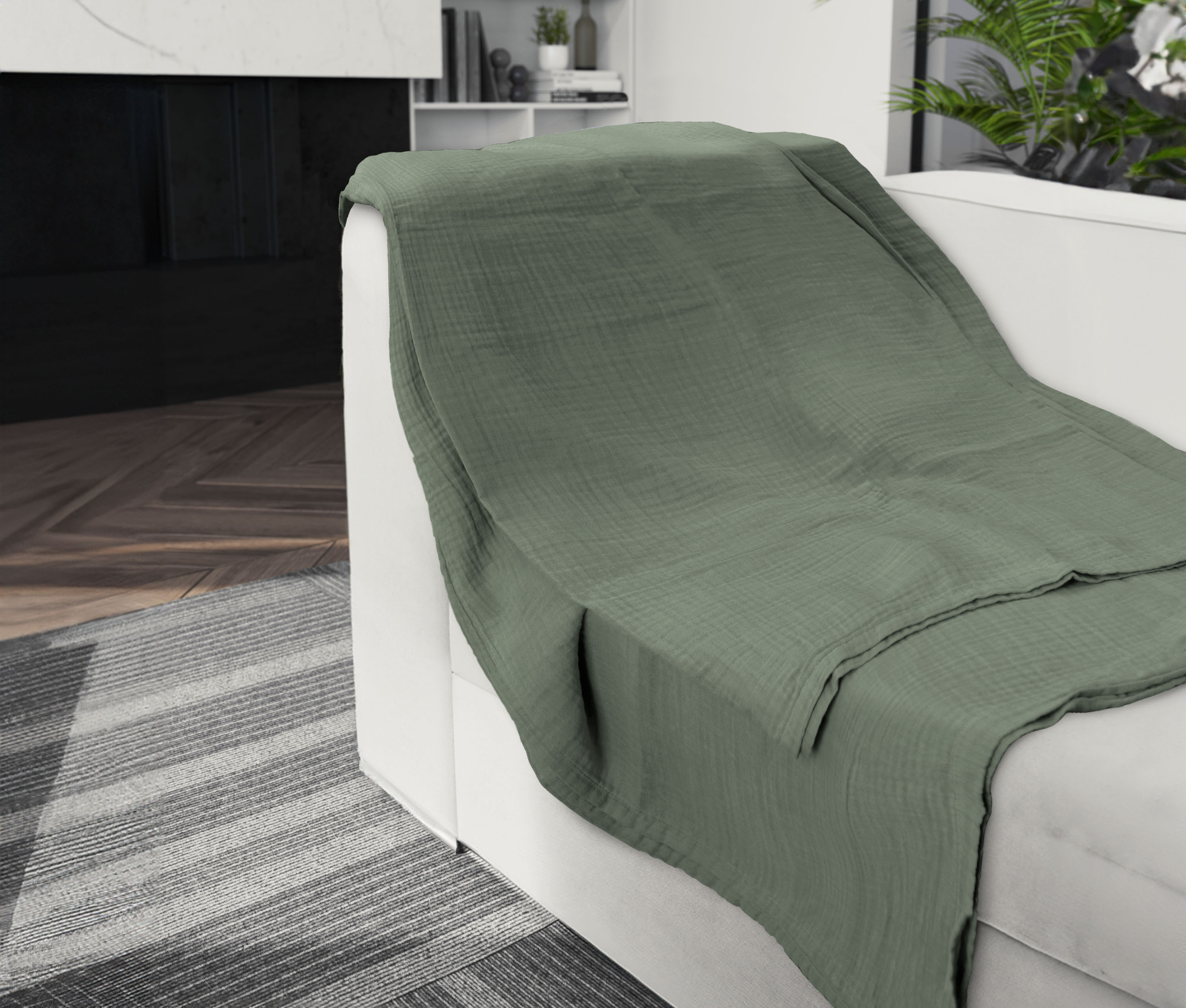 Wohndecke Musselin grün Textil