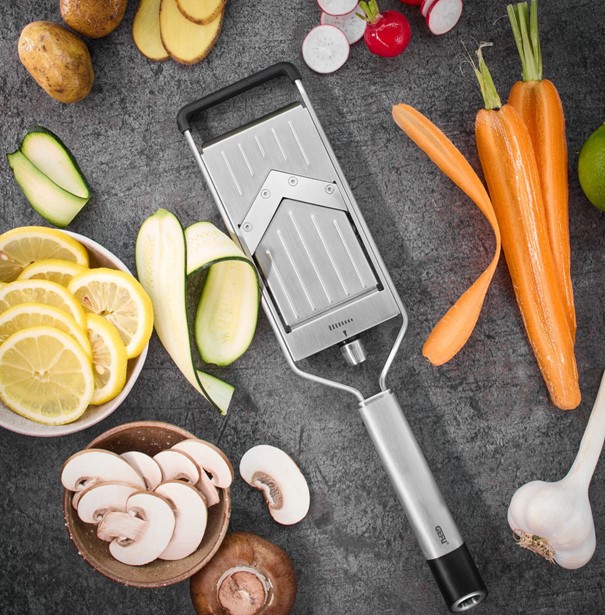 Info sui prodotti "Affettatrice a V Primeline argento acciaio inox"