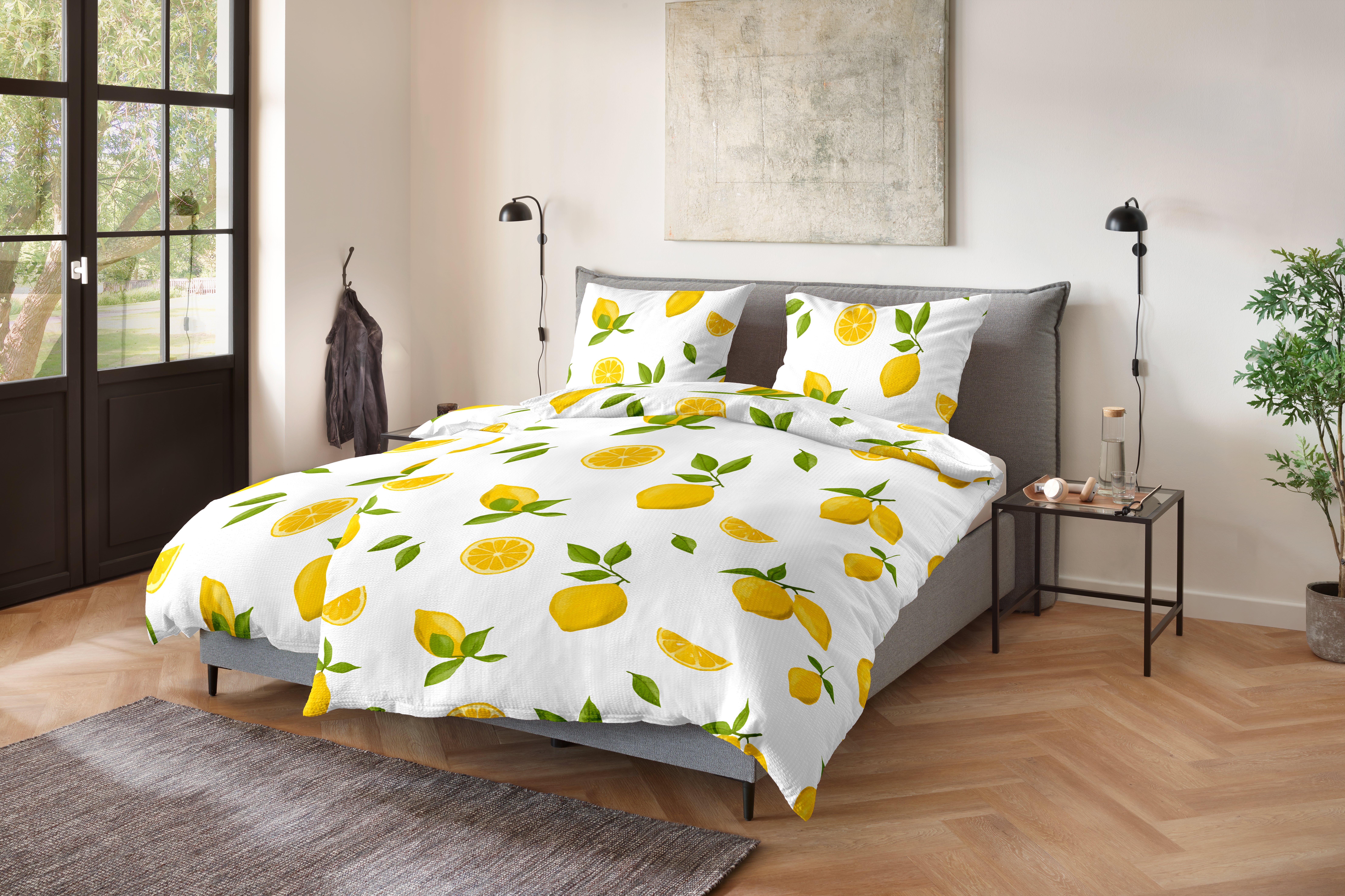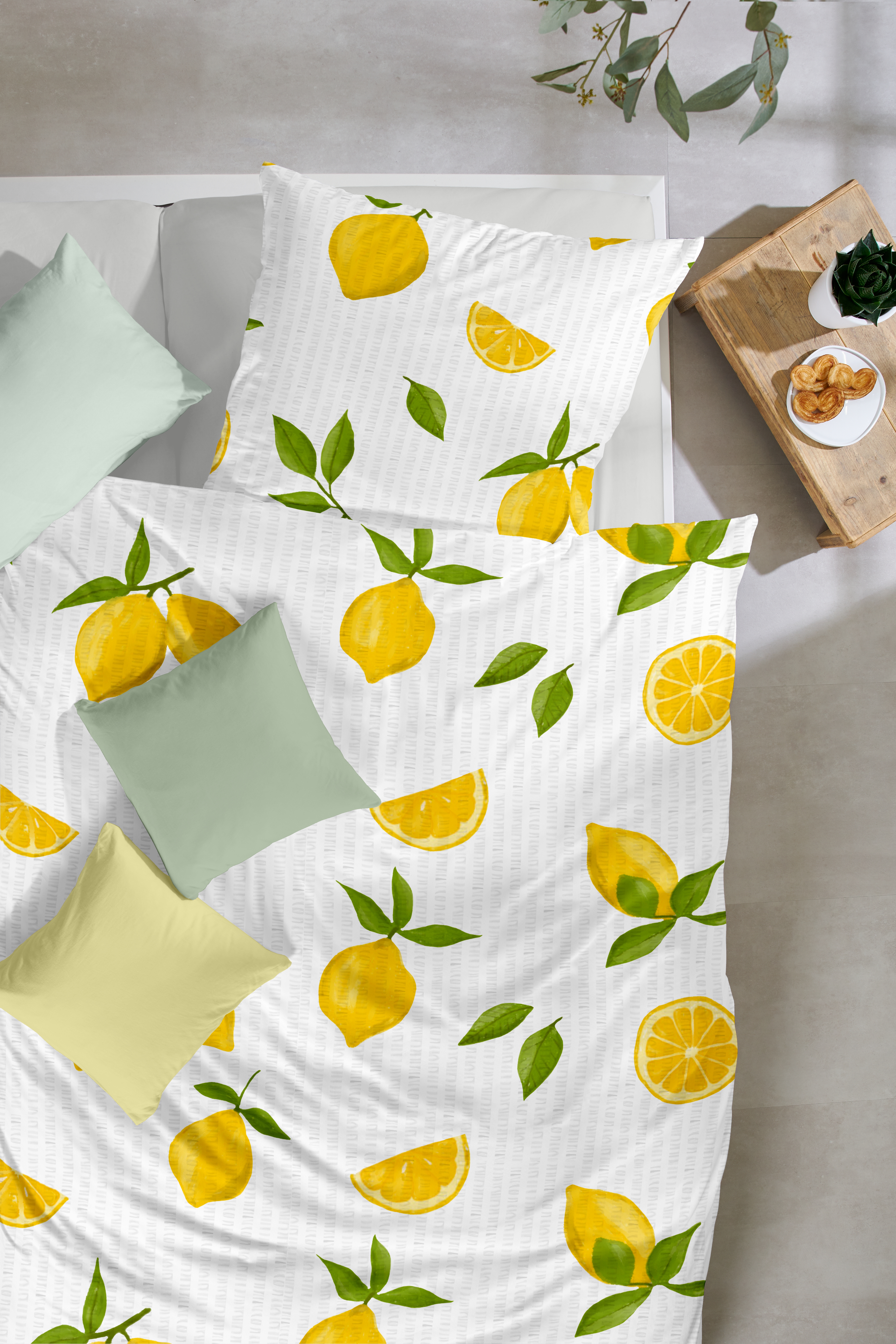 Biancheria da letto Seersucker in cotone giallo/bianco