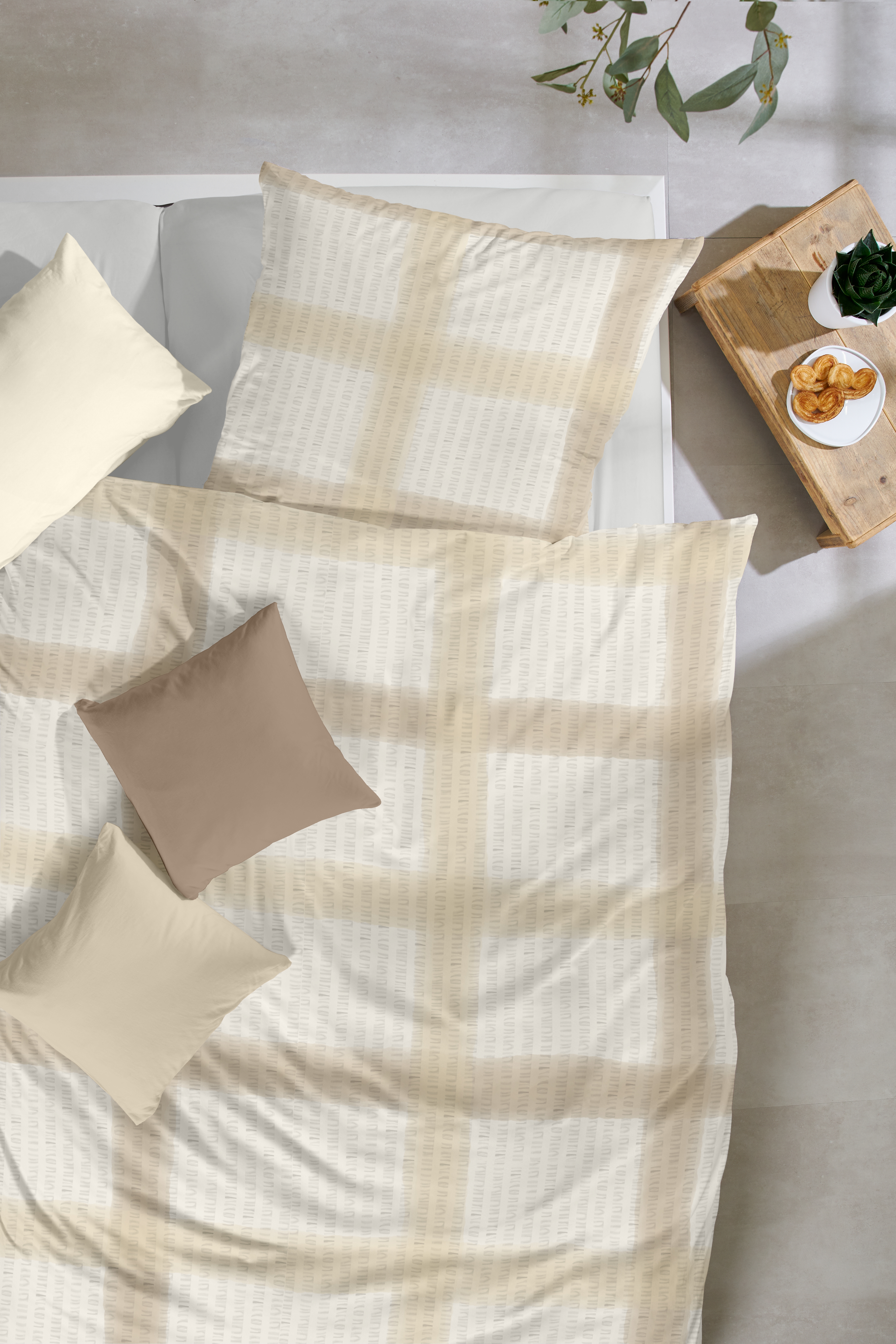 Una calda tonalità marrone conferisce a questa biancheria da letto di alta qualità in tessuto seersucker un aspetto invitante e accogliente. La texture facile da curare del seersucker non solo garantisce un comfort di sonno piacevole, ma offre anche un aspetto senza pieghe che appare sempre fresco. La biancheria da letto è composta da un set con le dimensioni di 60 x 80 cm per il cuscino e 140 x 200 cm per il piumone, ideale per un letto singolo o come accento elegante in una camera da letto moderna. Una pratica cerniera facilita l'inserimento e la rimozione, rendendo il letto perfetto in un attimo.