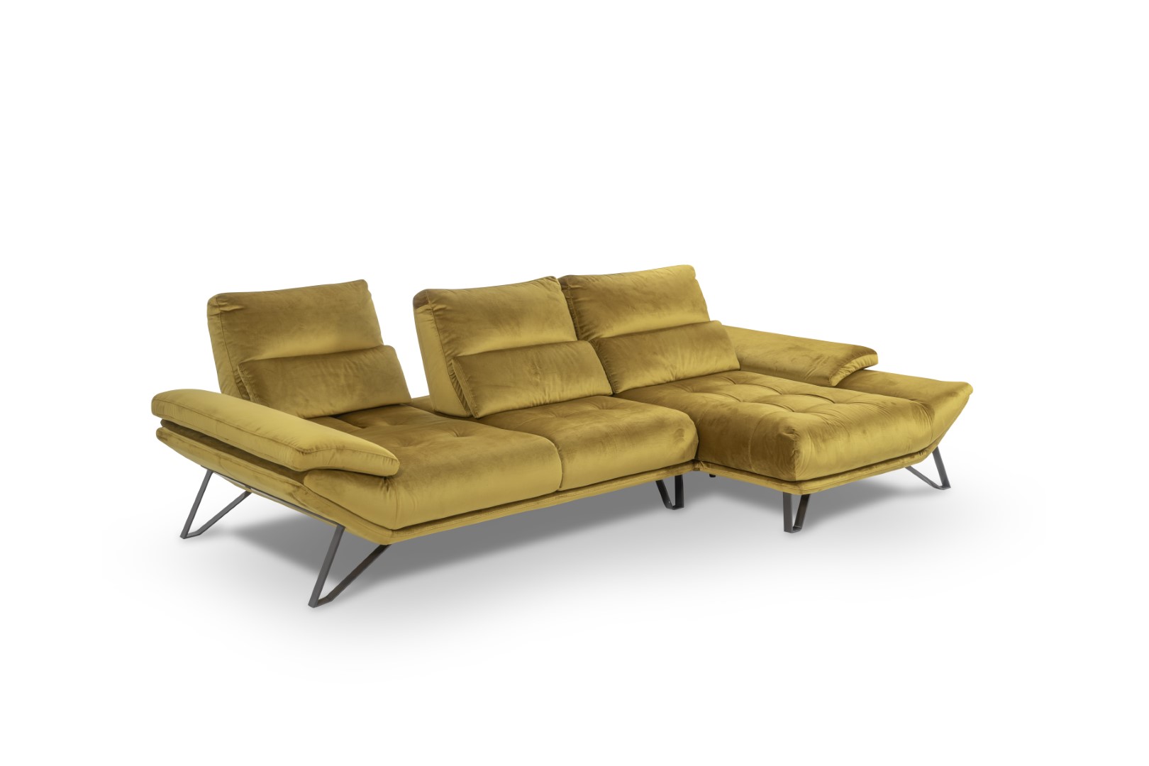 Il divano angolare FLY 2.0, di colore giallo brillante, si presenta con un'elegante forma a L che conferisce al vostro salotto un tocco fresco e moderno. Il rivestimento in 100% poliestere di alta qualità non solo garantisce una seduta confortevole, ma è anche facile da pulire. Robusta ed elegante allo stesso tempo, la struttura in metallo grigio-marrone combina stabilità e design con i materiali in legno, truciolato e abete. Scivolate nel comfort e sperimentate come FLY 2.0 diventi il fulcro del vostro salotto, pronto per ore di relax e riunioni conviviali. Concedetevi il massimo del comfort di seduta!