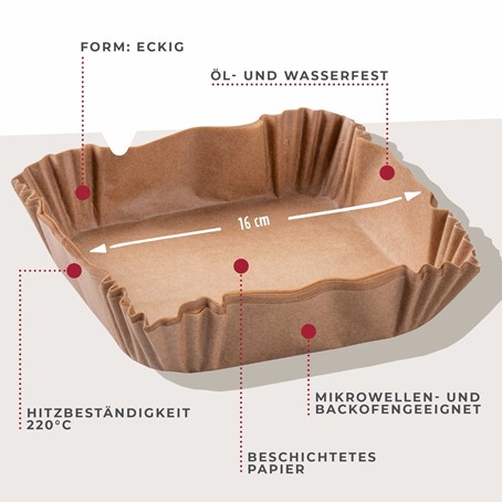 Info sui prodotti "Carta da forno per friggitrice ad aria calda 40 pezzi marrone"