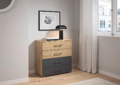 L'eleganza incontra la funzionalita: la cassettiera Bilbao-Extra in rovere e grigio combina l'estetica elegante con la praticita dello stoccaggio. Realizzata in rovere Artisan di alta qualita e in un robusto materiale a base di legno, colpisce per le sue proprieta decorative. Con il suo design moderno, la cassettiera si integra perfettamente in qualsiasi ambiente abitativo e offre molto spazio per riporre i propri oggetti. In salotto, in corridoio o in camera da letto, questo mobile e un vero e proprio richiamo visivo e permette di organizzare le cose con stile. Lasciatevi ispirare dalla versatilita della cassettiera Bilbao-Extra e date un tocco in piu alla vostra casa.