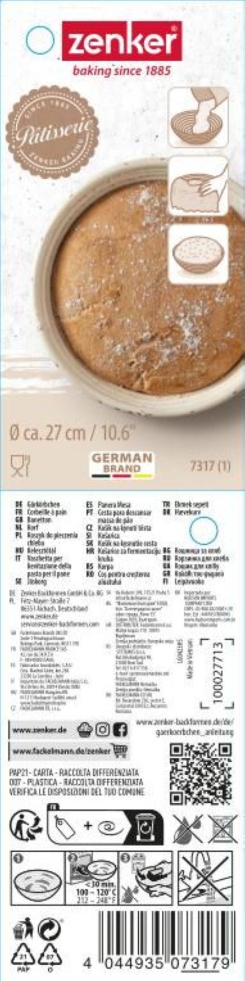 Con un impressionante diametro di 27 cm, il cestino per la lievitazione "Dein Brot" diventa rapidamente un aiuto indispensabile in cucina sia per i panettieri dilettanti che per i professionisti allo stesso modo. L'elegante tonalità beige si integra perfettamente in qualsiasi arredamento della cucina, conferendogli un'eleganza senza tempo. Questo cestino per la lievitazione supporta il processo di lievitazione ottimale immagazzinando l'umidità e garantendo una circolazione d'aria uniforme, in modo che l'impasto possa lievitare uniformemente. La struttura robusta ma leggera assicura una maneggevolezza semplice e una lunga durata. Che si tratti di croste rustiche o pane raffinato, con "Dein Brot" ogni tentativo di cottura riesce senza sforzo e con stile.