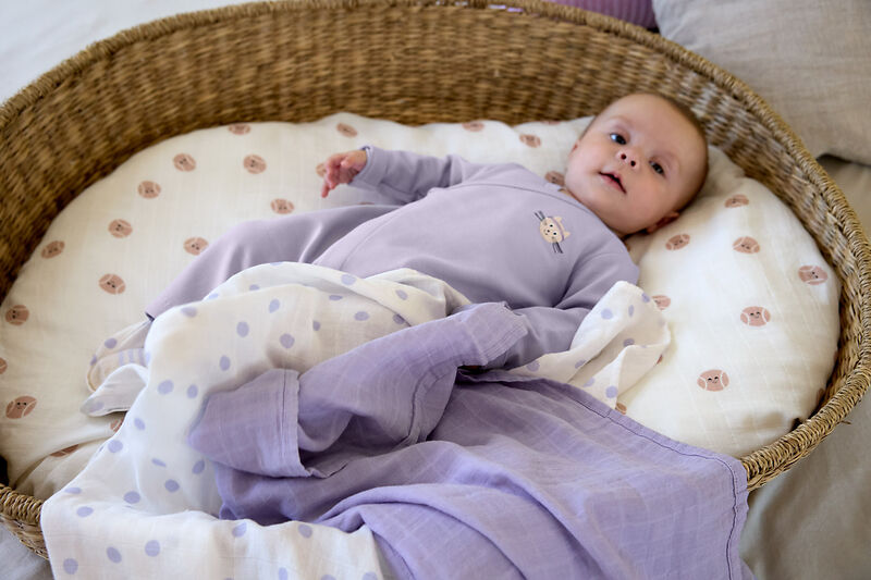 Info sui prodotti "Coperta per neonato 3 pezzi Tiny Team viola in cotone viscosa"