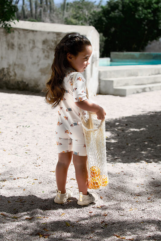 Info sui prodotti "Costume da bagno Sunsuit Beach Dog oranege bianco elastan poliestere"