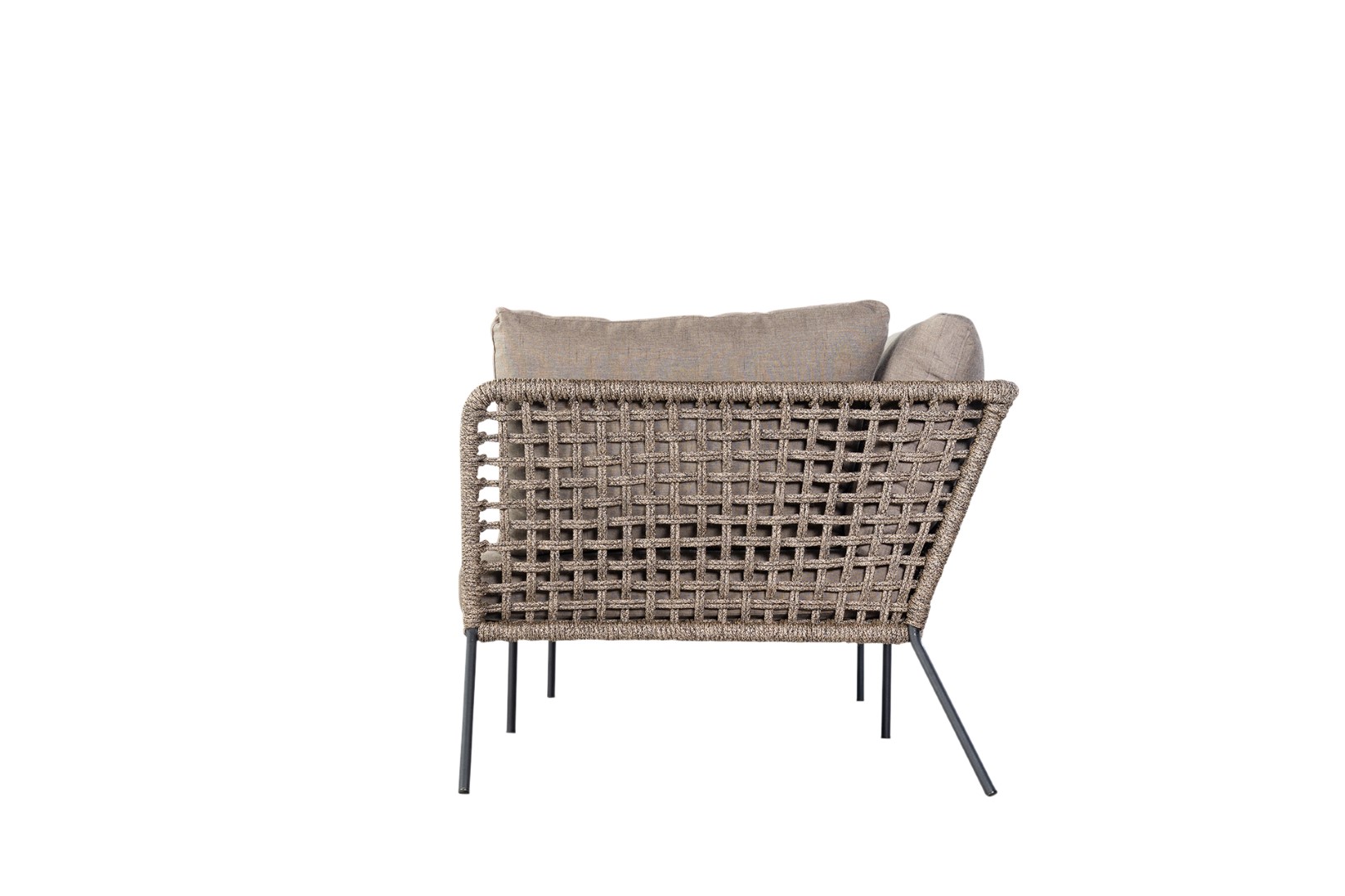 L'elegante divano da giardino Moco Rope in elegante marrone trasforma qualsiasi spazio esterno in un rifugio di lusso. Il rivestimento in tessuto di alta qualità, abbinato a un robusto telaio in acciaio verniciato a polvere nera, garantisce non solo un look sofisticato, ma anche una lunga durata. Grazie alle proprietà del materiale zincato a caldo, il divano è protetto in modo ottimale dalle intemperie. Che sia per rilassarsi in giardino o per socializzare nel patio, questo divano da giardino offre comfort e stile in un unico prodotto. Scegliete la qualità e il design per trasformare il vostro spazio esterno in un'oasi di benessere.