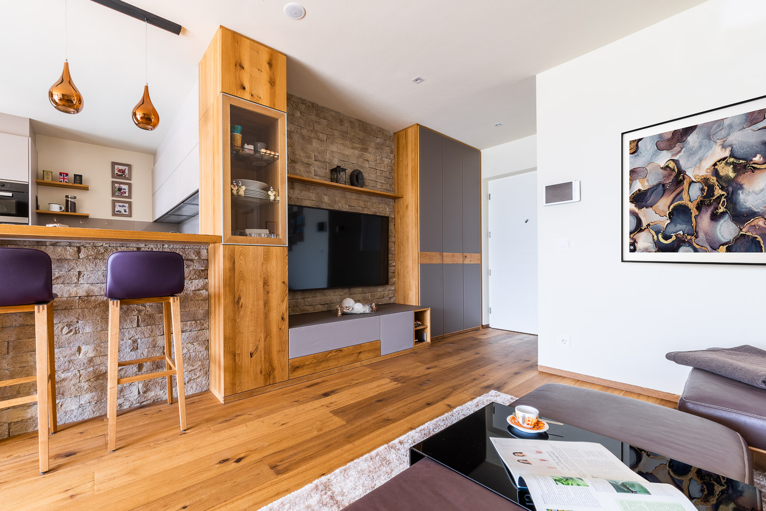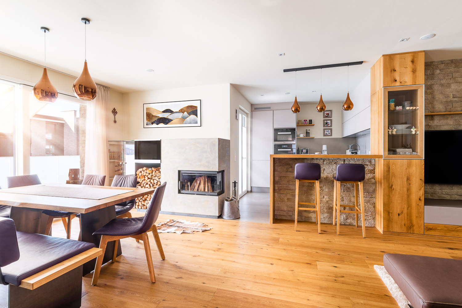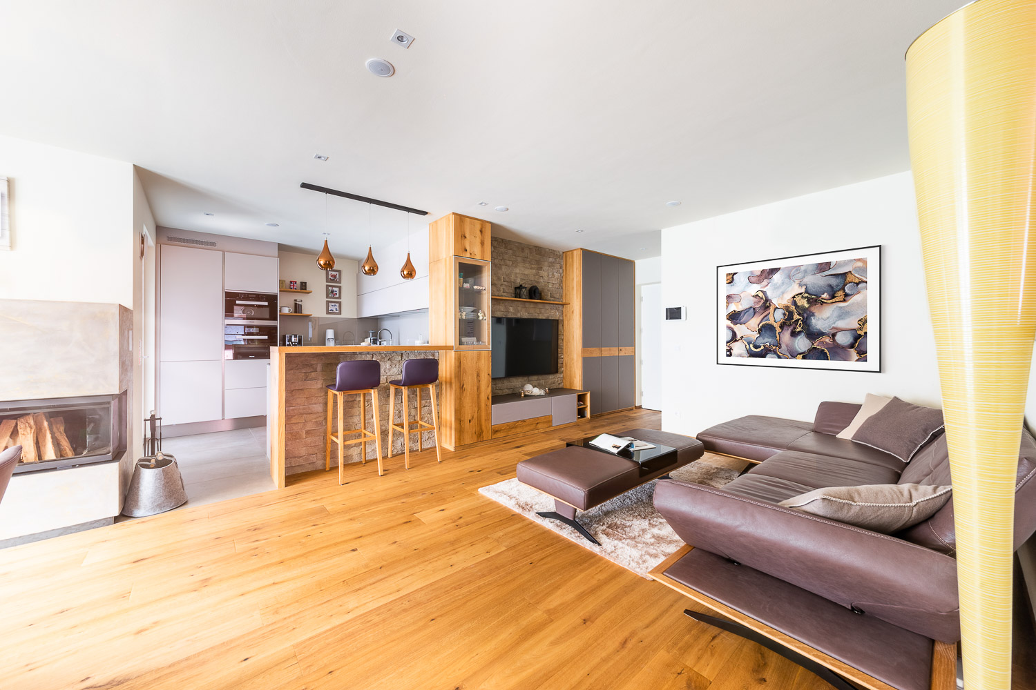 A Bolzano, sopra i tetti della città, abbiamo curato dalla A alla Z l'arredo di questo elegante attico.