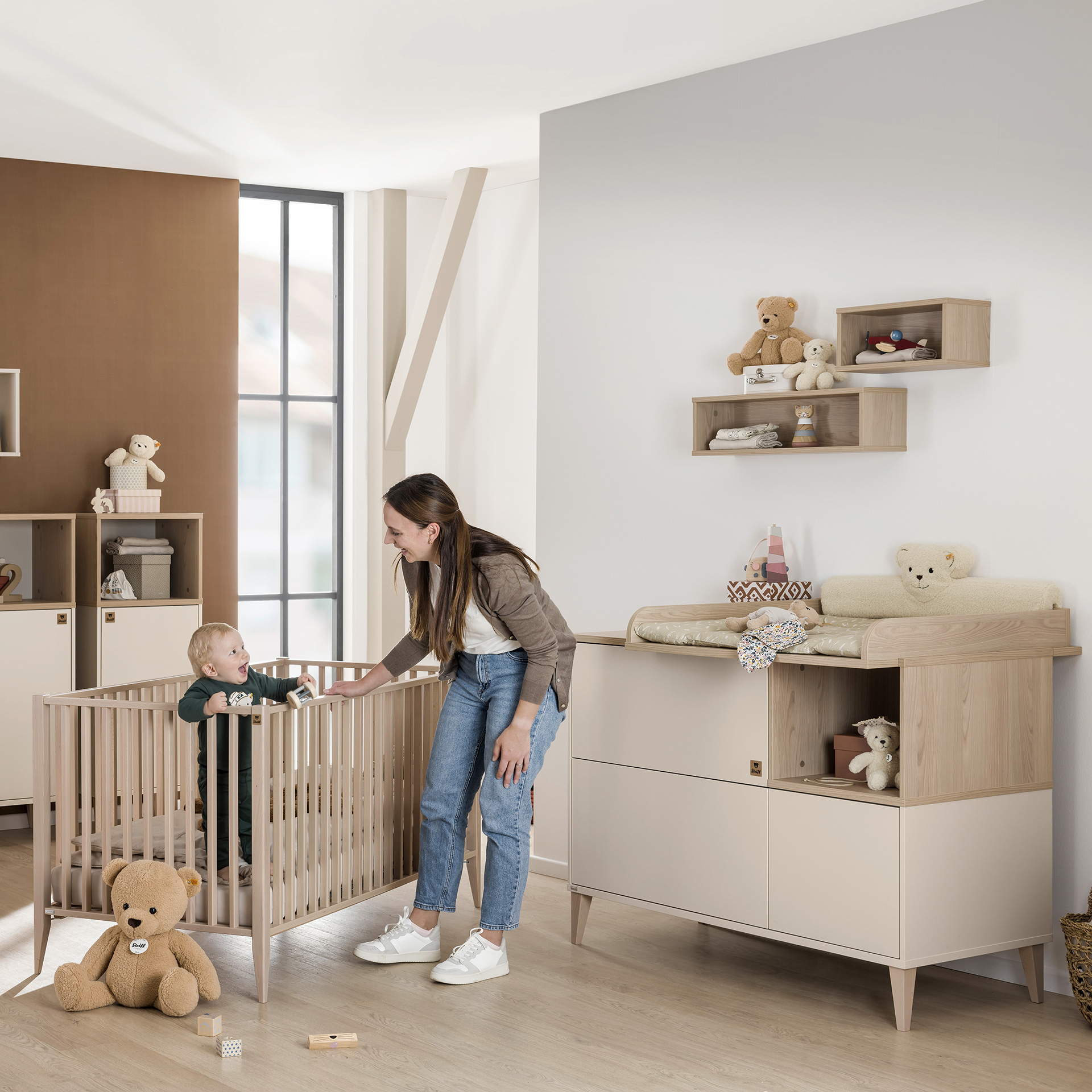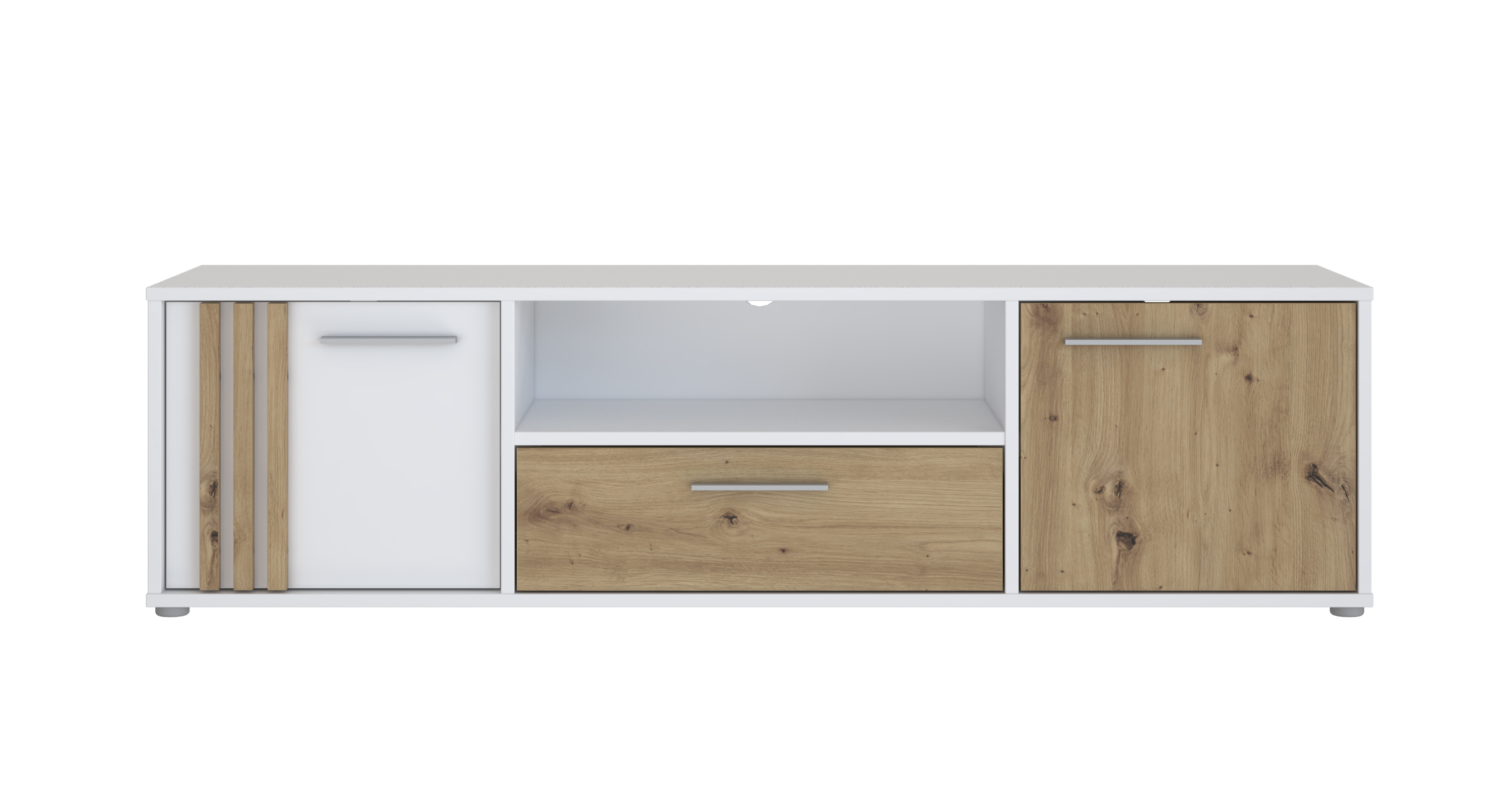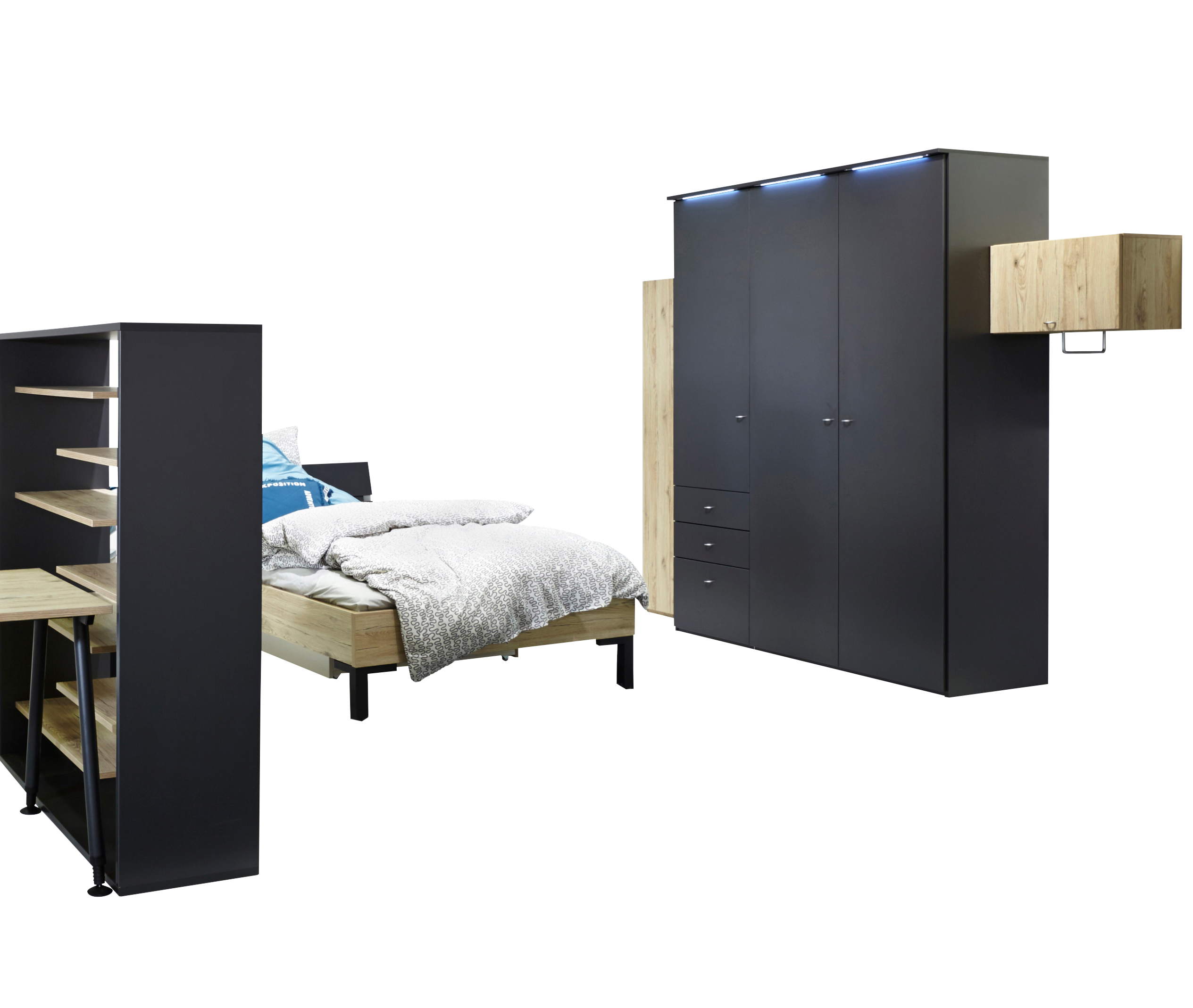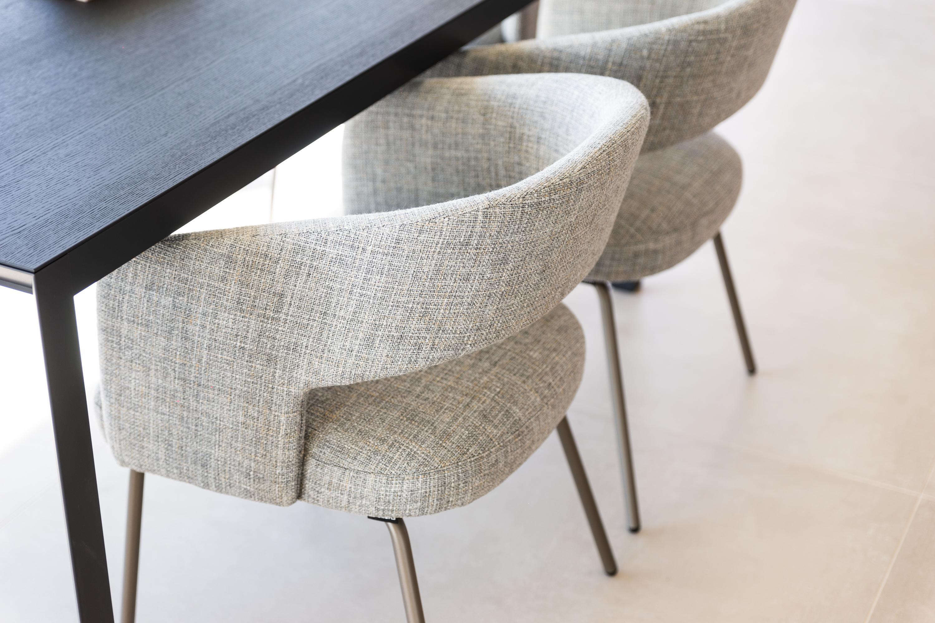L'open space dona all’appartamento compatto un senso di leggerezza. Un elegante tendaggio separa con discrezione la zona giorno, con angolo cottura e tavolo da pranzo, dalla camera da letto.