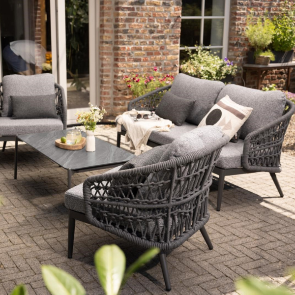 I mobili da esterno in stile Rope fondono estetica contemporanea e leggerezza naturale. L'intreccio dona a sedie, divani lounge e poltrone da giardino un look arioso e sofisticato, con un comfort di seduta eccellente. Resistenti alle intemperie, duraturi e di grande stile – gli elementi Rope sono la scelta ideale per chi vuole un giardino o una terrazza da vero colpo d'occhio.