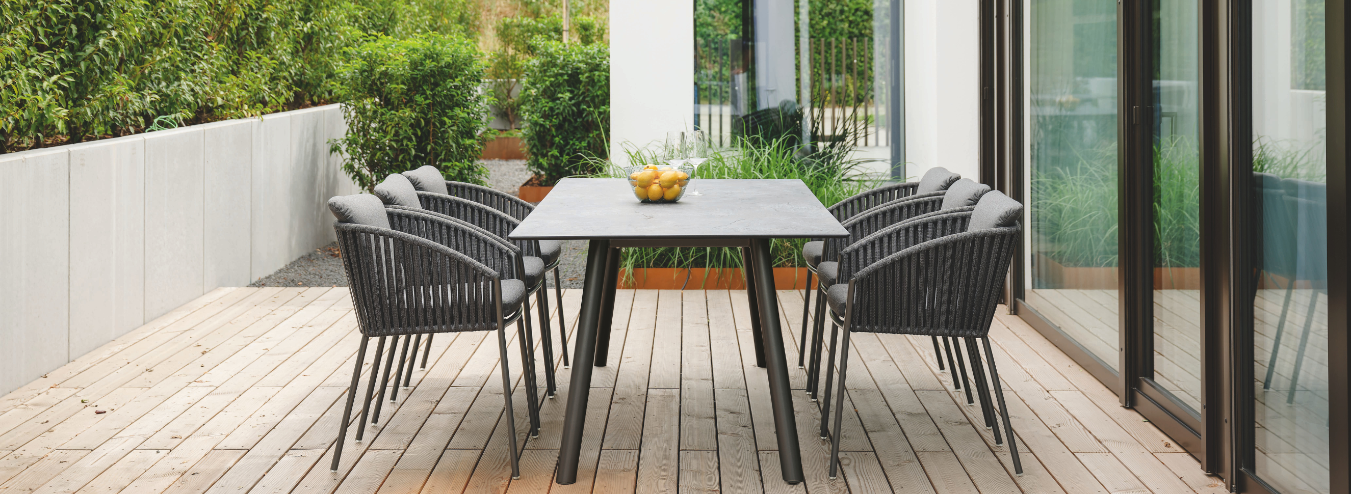 Uno spazio outdoor ben curato nasce da dettagli precisi, materiali di alta qualità e un design senza tempo. Dai tessuti tecnici resistenti ai sistemi tavolo modulari e componibili, fino agli eleganti elementi in stile Rope – scopri soluzioni di arredo per esterni che armonizzano funzionalità ed estetica, trasformando balcone, terrazza o giardino nel tuo angolo preferito.