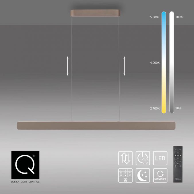 La Q-Stretto è un'elegante lampada a sospensione dal design sofisticato, ideale per arricchire gli spazi interni con un tocco di modernità. Il suo fascino risiede nel colore bronzo, che conferisce un'illuminazione calda e accogliente, perfetta per creare un'atmosfera intima e rilassante. Questa lampada è progettata per integrarsi perfettamente con diversi stili di arredamento, offrendo una soluzione di illuminazione raffinata e funzionale. Grazie alla sua versatilità, la Q-Stretto diventa un elemento decorativo centrale che attira l'attenzione e valorizza l'ambiente in cui è collocata. Scopri come questa lampada a sospensione può trasformare il tuo spazio interno.