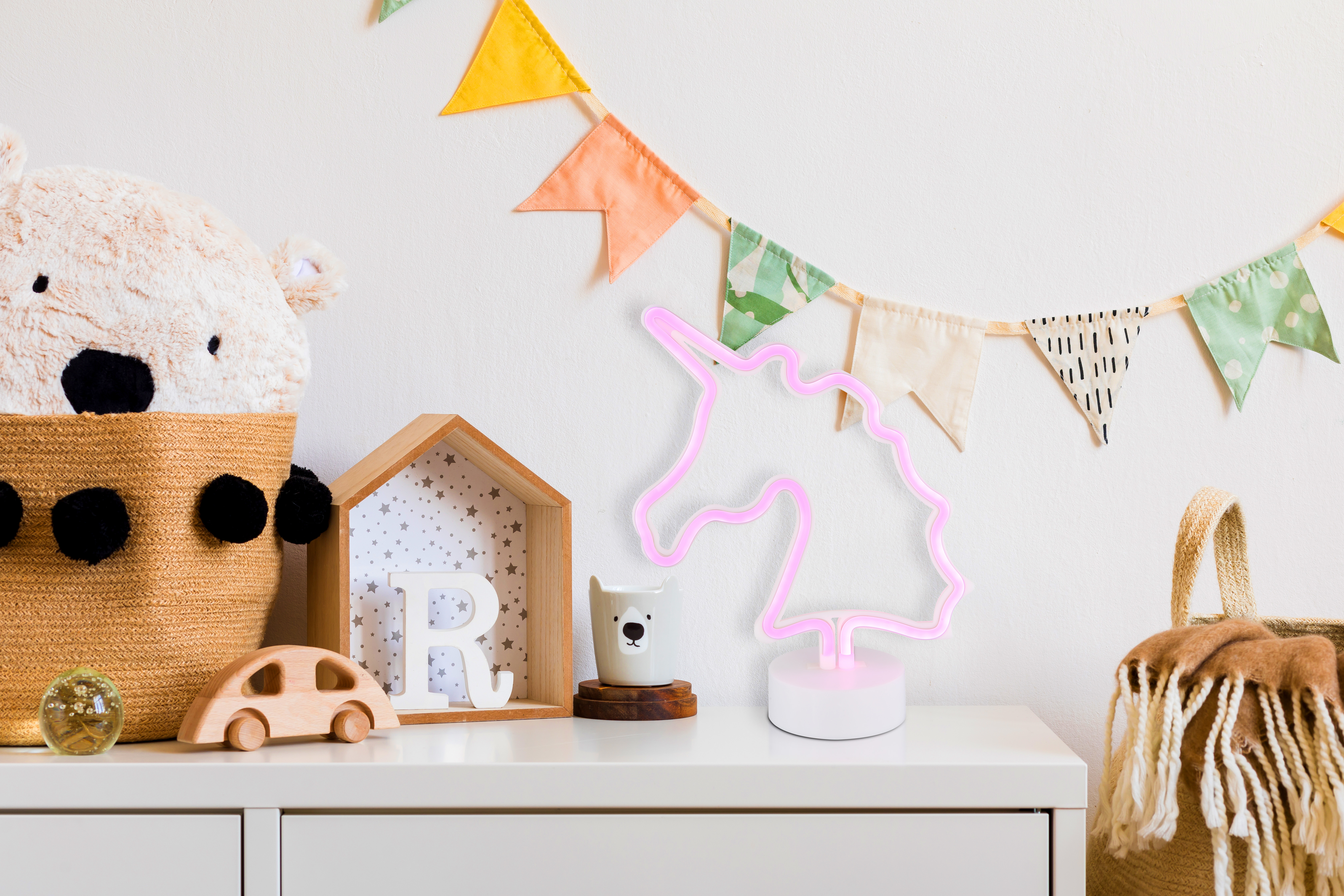 Un tocco di magia porta la lampada decorativa unicorno in ogni stanza. Questa affascinante luce in una elegante tonalità bianca trasforma angoli bui in magiche oasi di luce. Ideale da posizionare su una mensola o un comodino, diffonde una luce soffusa e rilassante che entusiasma sia i bambini che gli adulti. Con il suo design giocoso e la colorazione neutra, si integra perfettamente in qualsiasi ambiente. Perfetta per camere dei bambini, camere da letto o come punto focale nel soggiorno. Questa lampada non è solo un elemento di illuminazione pratico, ma anche un vero e proprio elemento di attrazione che porta gioia e fantasia nella vita quotidiana.