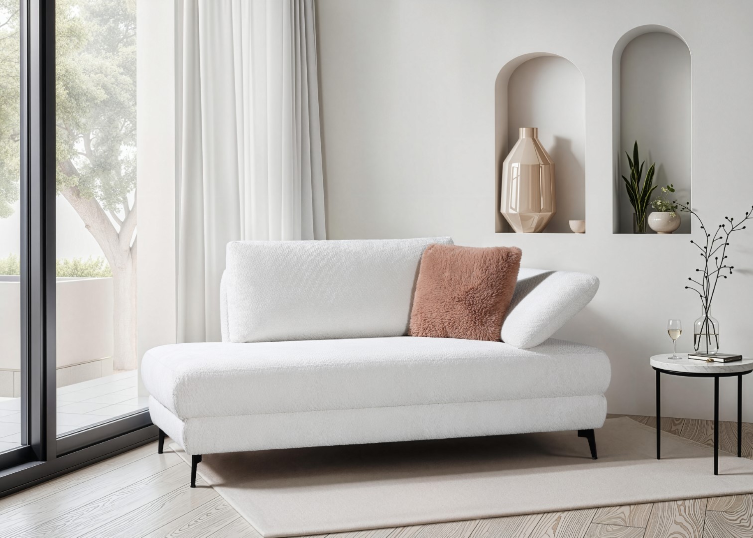 Il design elegante incontra la funzionalità: il lettino Wesley colpisce per l'elegante colore bianco che aggiunge un tocco moderno a qualsiasi ambiente. Realizzato al 100% in poliestere, il tessuto di alta qualità offre non solo comfort ma anche durata. La struttura in metallo nero garantisce stabilità e crea un contrasto sorprendente con il materiale esterno di colore chiaro. Come elegante elemento d'arredo in soggiorno o come oasi di tranquillità in camera da letto, il lettino Wesley è versatile e si adatta al vostro stile di vita. Lasciatevi ispirare dal suo fascino senza tempo e godetevi i momenti di relax sul vostro nuovo lettino preferito.
